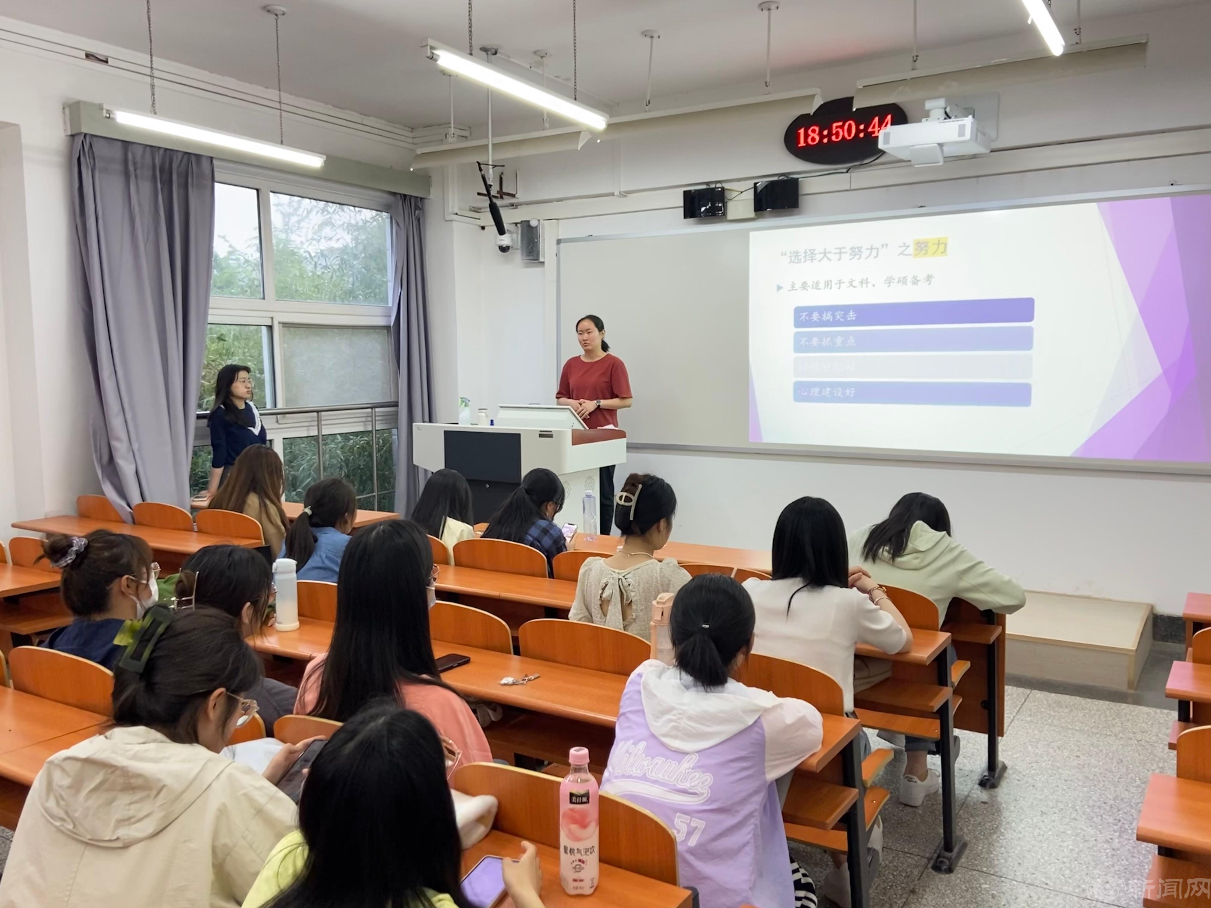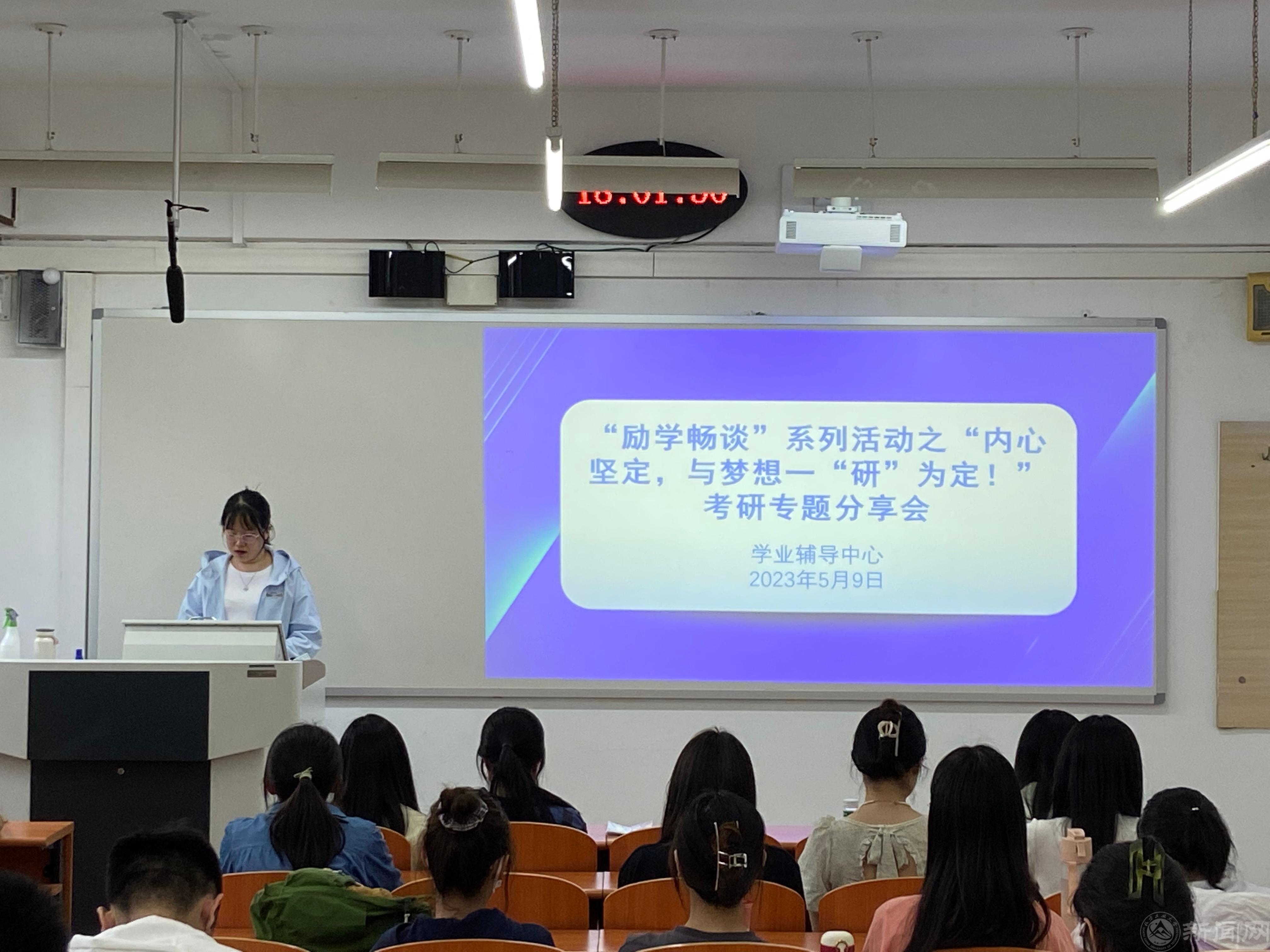 6位考取不同學(xué)校、不同專(zhuān)業(yè)的優(yōu)秀學(xué)長(zhǎng)學(xué)姐依次進(jìn)行了經(jīng)驗(yàn)分享交流。他們結(jié)合自身考研復(fù)習(xí)經(jīng)歷,圍繞日常學(xué)習(xí)、報(bào)考學(xué)校選擇、自身定位、備考心態(tài)、復(fù)習(xí)技巧、調(diào)劑經(jīng)驗(yàn)等方面內(nèi)容,深入細(xì)致與同學(xué)們進(jìn)行交流分享。各位學(xué)長(zhǎng)學(xué)姐既分享了備戰(zhàn)考研的艱辛過(guò)程,也講述了自己的心路歷程,并仔細(xì)解答了同學(xué)們提出的各類(lèi)問(wèn)題,鼓勵(lì)同學(xué)們調(diào)整好心態(tài),不到最后一刻絕不放棄,同時(shí)也告訴同學(xué)們要正確定位,理性看待考研和就業(yè)。