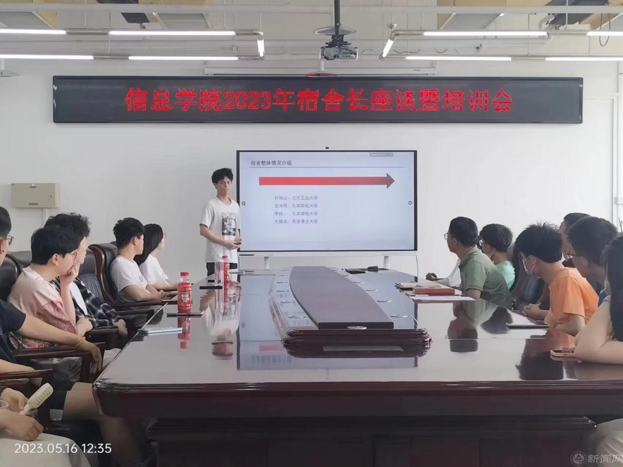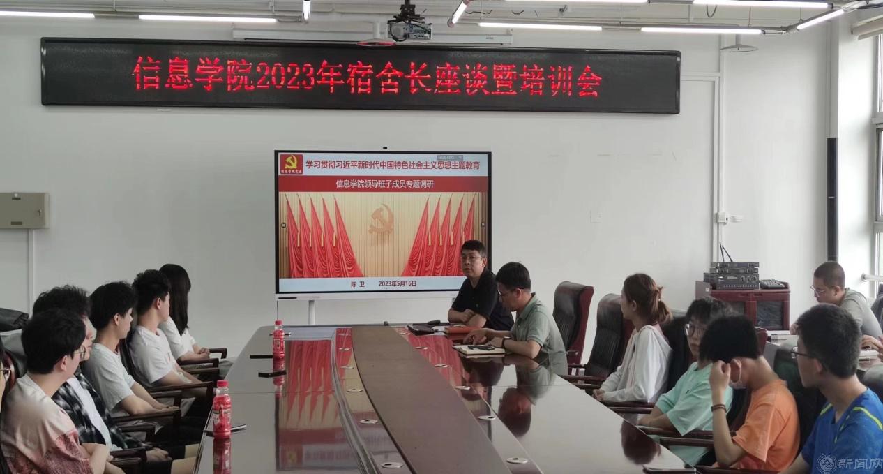 大學生宿舍思政教育已成為高校思想政治教育的重要組成部分,為了進一步推進信息學院“寓見一線”宿舍思政育人模式,加強和改進學院學生思想政治教育工作,5月16日中午,信息學院召開2023年宿舍長座談暨培訓會,學院黨委副書記陳衛、團委書記楊和家、各年級輔導員和各年級宿舍長參會。