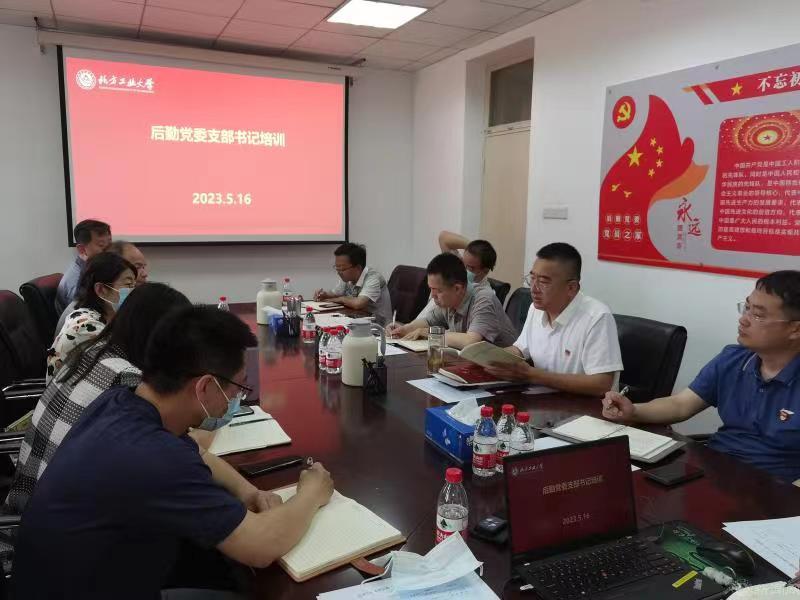 為深入學習貫徹黨的二十大精神,扎實開展學習貫徹習近平新時代中國特色社會主義思想主題教育,進一步推進后勤基層黨支部工作標準化、規范化建設,5月16日,后勤黨委在一公寓114會議室召開黨支部書記培訓會。后勤黨委委員、處級領導干部、黨支部書記和黨務秘書參加培訓。培訓會由后勤黨委書記鄭泰平主持。
