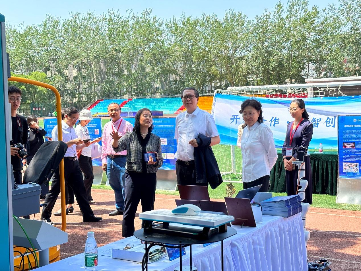5月18日,“北方·揚帆”科技創新暨科研成果轉化大會隆重召開,“2023學生實踐成果展及數字產業學院教學成果展”同時在學校西操場盛大開幕。北京市教育工委領導、校領導和行業企業代表參觀了展示內容,并對成果展給予充分肯定。