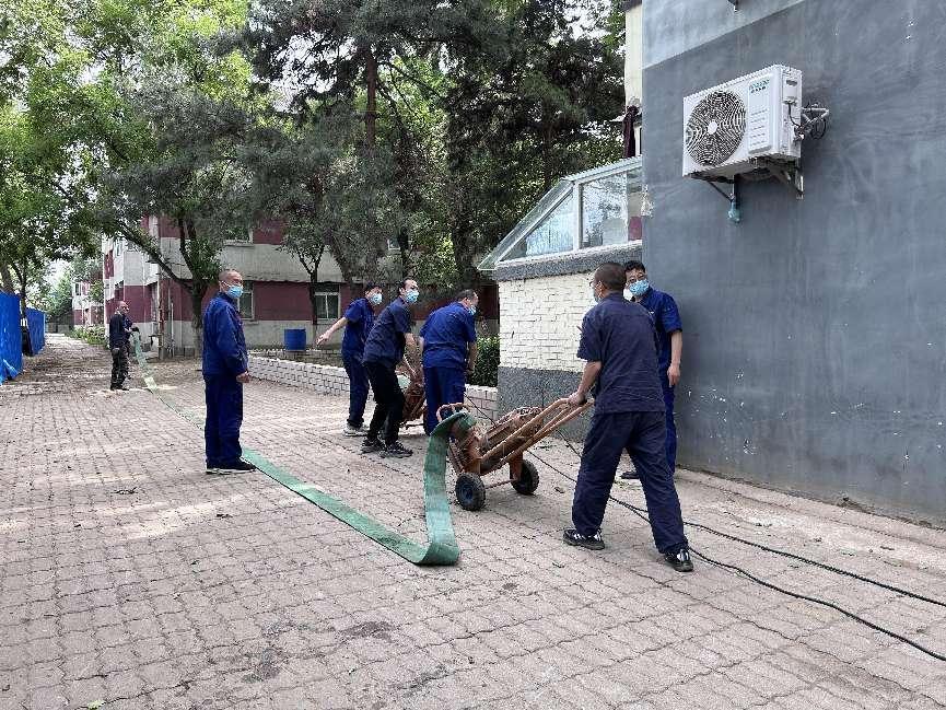 演練活動(dòng)現(xiàn)場(chǎng)模擬了受暴雨影響,家屬10號(hào)樓東側(cè)出現(xiàn)積水入樓情況,工作人員立即啟動(dòng)應(yīng)急預(yù)案。演練設(shè)置了發(fā)現(xiàn)險(xiǎn)情、啟動(dòng)防汛應(yīng)急預(yù)案、發(fā)出應(yīng)急處置指令和應(yīng)急處置等環(huán)節(jié)。部門成立防汛領(lǐng)導(dǎo)小組、整個(gè)搶險(xiǎn)在領(lǐng)導(dǎo)小組統(tǒng)一指揮下科學(xué)分工、明確各職能小組的職責(zé)和任務(wù)。預(yù)警組負(fù)責(zé)險(xiǎn)情預(yù)判并立即報(bào)告、現(xiàn)場(chǎng)秩序維護(hù)。物資保障組負(fù)責(zé)物資運(yùn)輸及對(duì)家屬10樓各單元門進(jìn)行封堵。搶險(xiǎn)突擊組負(fù)責(zé)架設(shè)臨時(shí)水泵、接電進(jìn)行緊急排水。