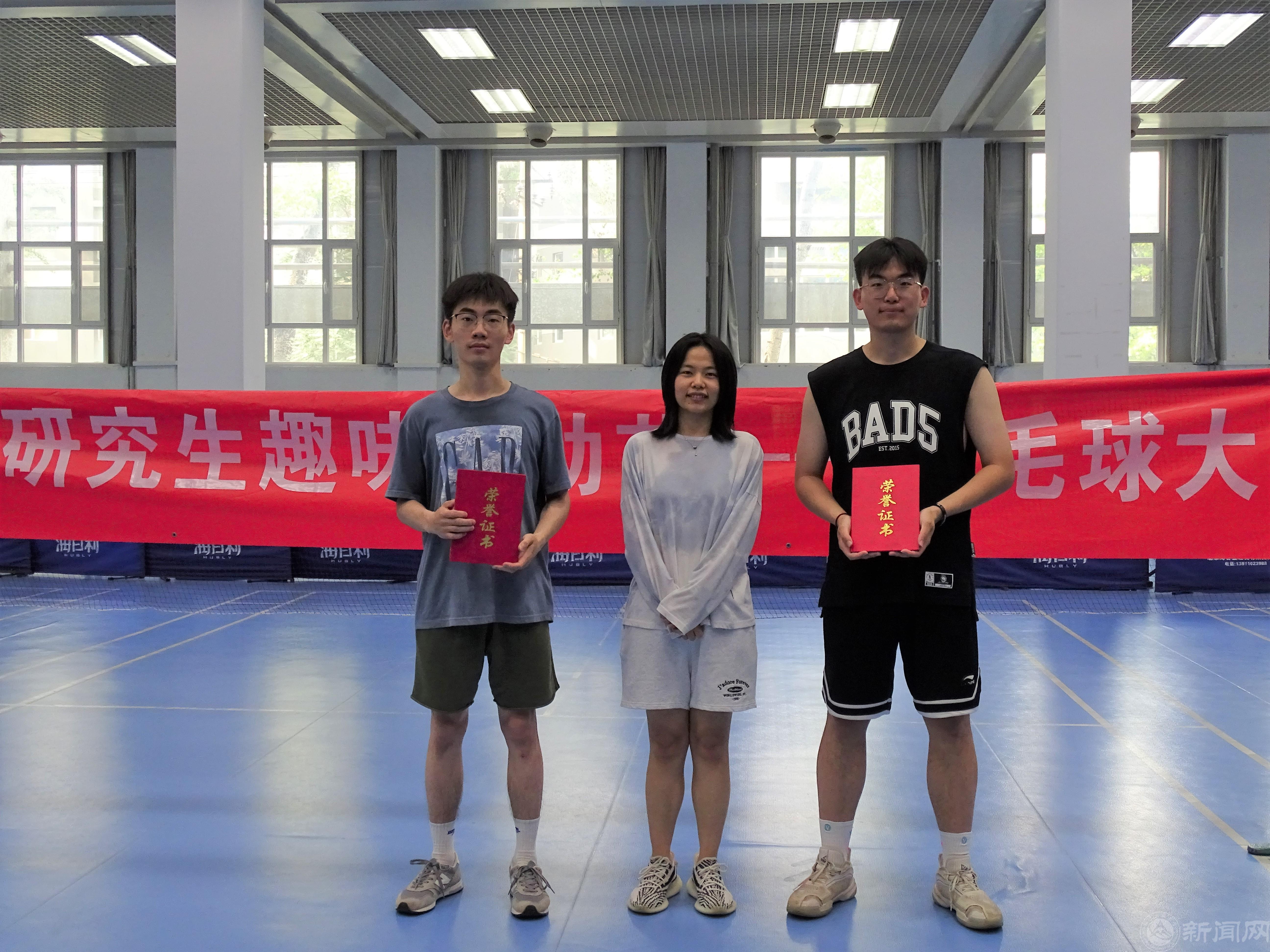 羽毛白如雪,引拍彎似弓。經過一天的激烈角逐,最終軟專研22班陳鑫鑫、電科22高浩楠同學奪得男雙冠軍,通信20劉迪、席鑫同學獲得女雙冠軍,電科22王瑩、電通21韓宏偉同學奪得混雙冠軍。研究生輔導員王免老師,學院團委書記楊和家老師為獲獎選手頒獎。