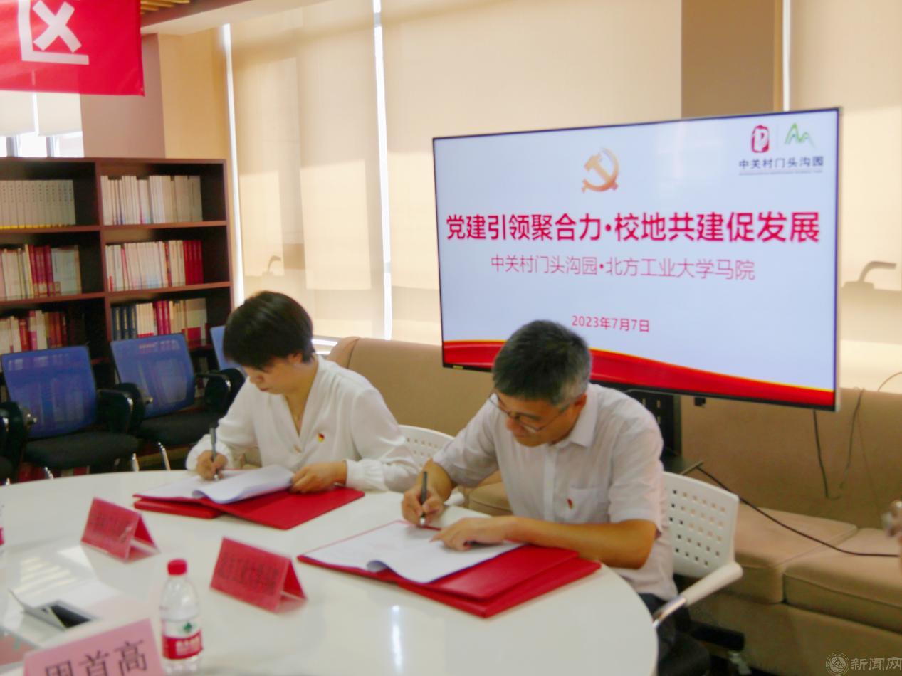 7月7日下午,中關村門頭溝園與北方工業大學馬克思主義學院“黨建引領聚合力?校地共建促發展”共建活動暨合作共建簽約儀式在中關村門頭溝園黨群服務中心舉行。中關村門頭溝園黨工委副書記侯曉倩、團工委書記李琰、基層黨組織書記代表,北方工業大學馬克思主義學院黨委書記張茂林、院長袁本文以及學院教師代表共同參加活動。