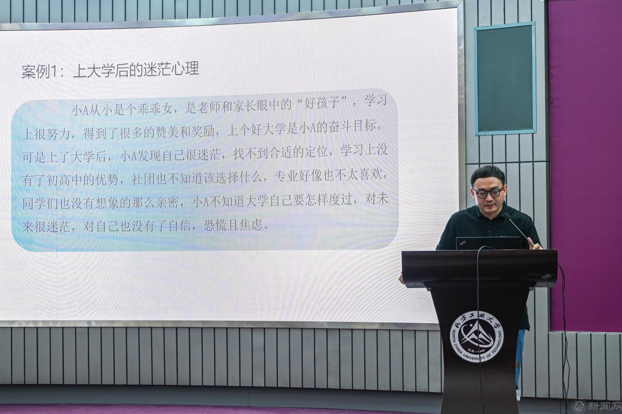 田儒基老師對學生心理健康教育工作方面進行介紹。他講到,初入大學的孩子們正處于世界觀、人生觀、價值觀建立的重要階段,容易產生各種各樣的心理問題。我校設立有心理咨詢室,定期組織心理健康季系列活動,學院輔導員、班導師也會密切關注學生的心理狀況,希望家長能夠積極配合,及時察覺學生的心理變化,勤于溝通,與學校一同維護學生的心理健康。