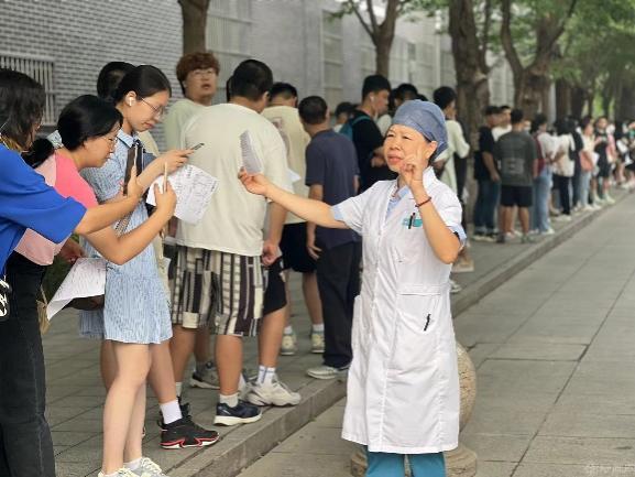 體檢期間,校醫院全體醫護人員、校志愿者們在7點全體到達現場,體檢工作順利展開。醫護人員嚴格按照體檢規范操作,為新生完成了抽血化驗、胸片(DR)、內、外科血壓、視力、色覺、身高、體重以及非京籍學生麻風腮和乙腦疫苗接種等項目檢查。本次體檢分時段、分區域進行,學生志愿者現場維護秩序,最大限度減少了人員擁擠,保證新生體檢有條不紊地進行。
