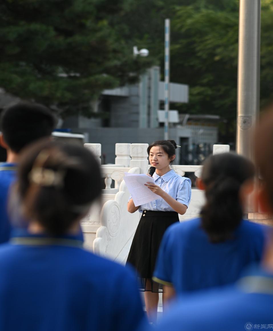 “升國旗、奏唱國歌”。國旗班的升旗、護旗和儀仗隊方陣的隊員們目光堅毅,踏著堅定的步伐、整齊劃一地護衛著鮮紅的國旗邁向升旗臺。全場師生莊嚴站立在敦品樓前廣場,深情注目著鮮紅的五星紅旗冉冉升起,齊聲高唱國歌!“歷史不能忘,吾輩當自強!”這一波瀾壯闊的豪邁宣言在心中縈繞!
