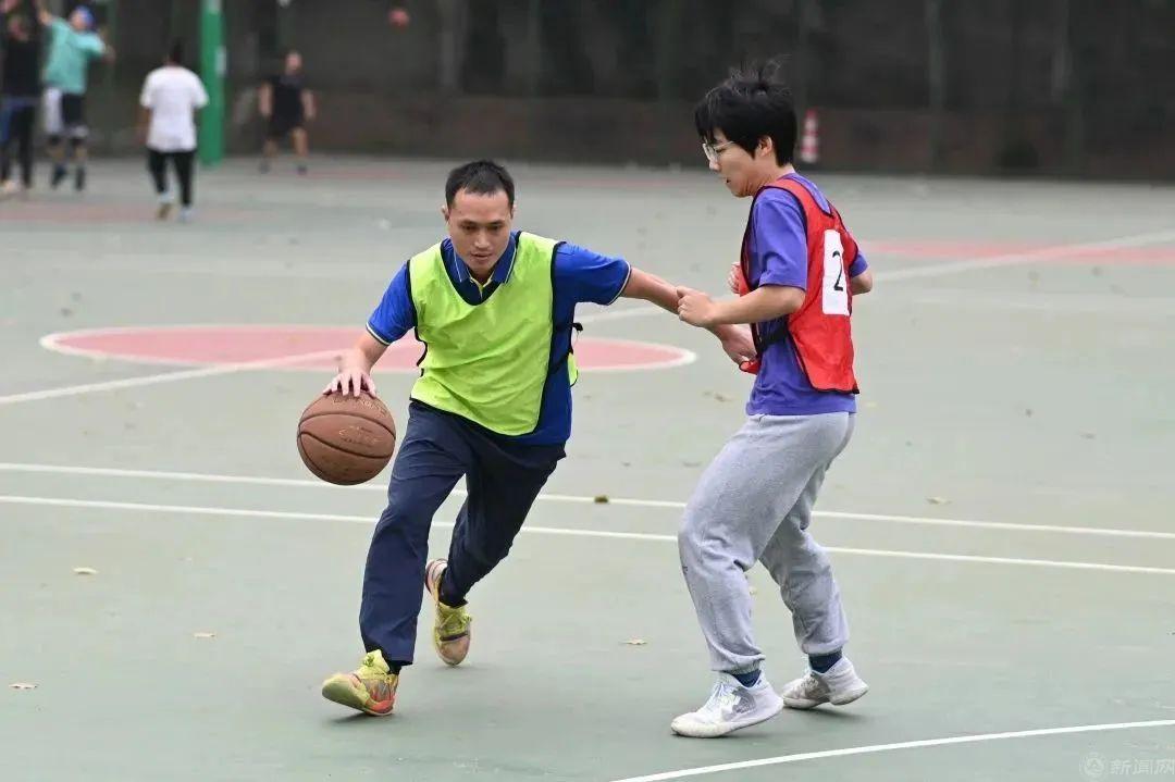 打一場籃球賽,述一段師生情。師生籃球友誼賽是信息學院的傳統項目。學院張靜、曲洪權、賈瑞明、李源、崔健、任進、張遠、楊中國等教師組隊,與2023級本科和研究生新生代表聯隊開展了以“青春正當時,共敘師生情”為主題的師生籃球友誼賽。學院黨委書記王偉賓老師為比賽開球。隨著一聲哨響,各運動員立刻進入狀態,打得十分歡樂,充分享受著運動帶來的快樂。賽場上兩支隊伍你追我趕、互不相讓,隊員們你來我往,激烈交鋒。熟練運球、傳球、投籃,舉手投足間展現了默契的配合和團結的力量,比分交替上升,僵持不下。兩隊不斷運用戰術,各隊員配合默契、全力以赴,賽場精彩紛呈。雙方打得有來有回,賽況非常激勵。第二節一開始,學生隊展開猛烈進攻,隊員間默契合作,比分迅速上升。下半場比賽迅速進入白熱化階段,兩支隊伍都咬緊牙關,盡力抓住每個得分機會。臨近比賽結束,教師隊憑借精準的進球奮起直追,最終以42比33的比分戰勝學生隊獲得師生籃球賽的勝利。“一場球賽展現出了學院師生團結、互幫互敬的良好氛圍,彰顯出信息學院師生擅長協作、勇于拼搏的精神風貌。”賽后,師生紛紛表示希望學院常態化開展師生聯動活動,不斷豐富師生校園文化生活。
