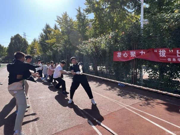 為了豐富學生校園文化生活,進一步推進班級建設,營造積極向上的班風,展現當代大學生積極進取的精神風貌,信息學院于10月26日中午在小操場組織2023級新生拔河比賽。
