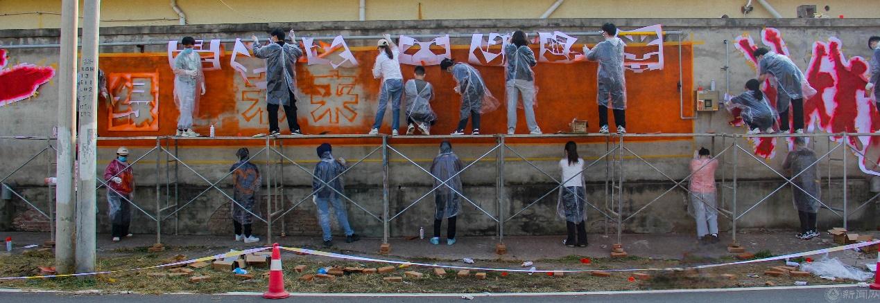 工設本科學生黨支部與樂政務村黨支部進行了深入交流,確定了同學們在該村文化墻上繪制主題鮮明的圖案方案。在村民的幫助下,經過一天忙碌,工設本科學生黨支部的黨員們在墻上繪制了一幅生動的彩色圖畫,裝點著村莊。