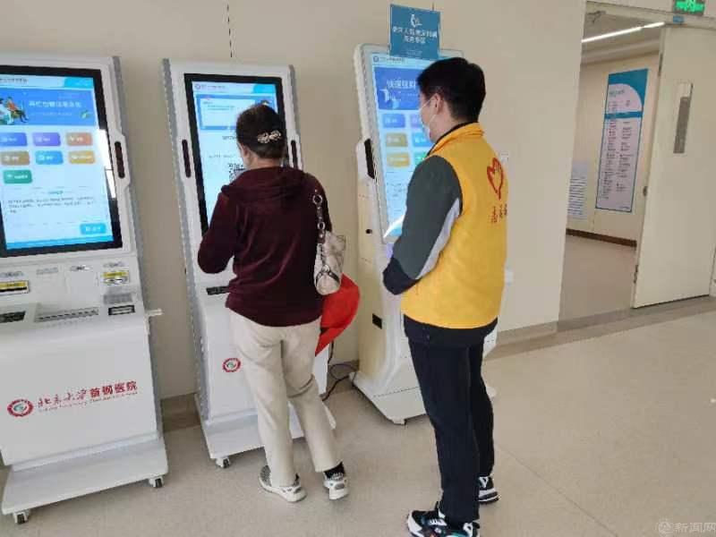 活動中,志愿者們身穿統(tǒng)一的黃馬甲,分布在門診的各個區(qū)域,積極引導患者前往相關(guān)科室,并幫助他們使用自助掛號和自助化驗報告單設備。志愿者們熱情主動幫助就醫(yī)人員,用自己的耐心細致服務溫暖著大家。