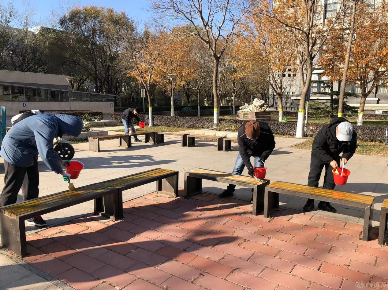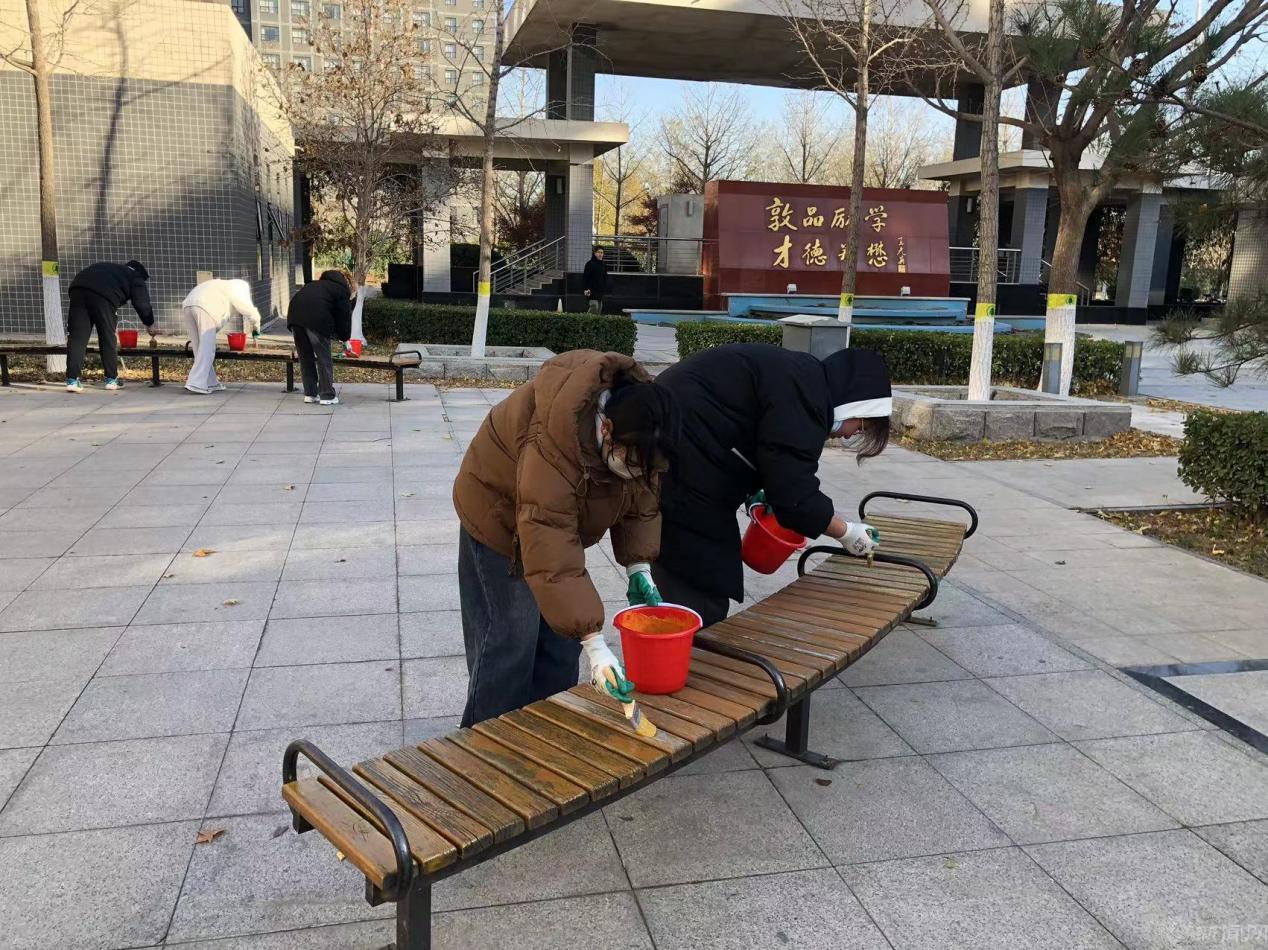 11月24日下午,服務中心組織20名學生在鐘秀廣場開展“匠”心粉刷座椅,扮靚校園的勞動教育課堂。綠化環衛黨支部和動力修繕黨支部聯合黨員骨干、積極分子共15名同志參加。