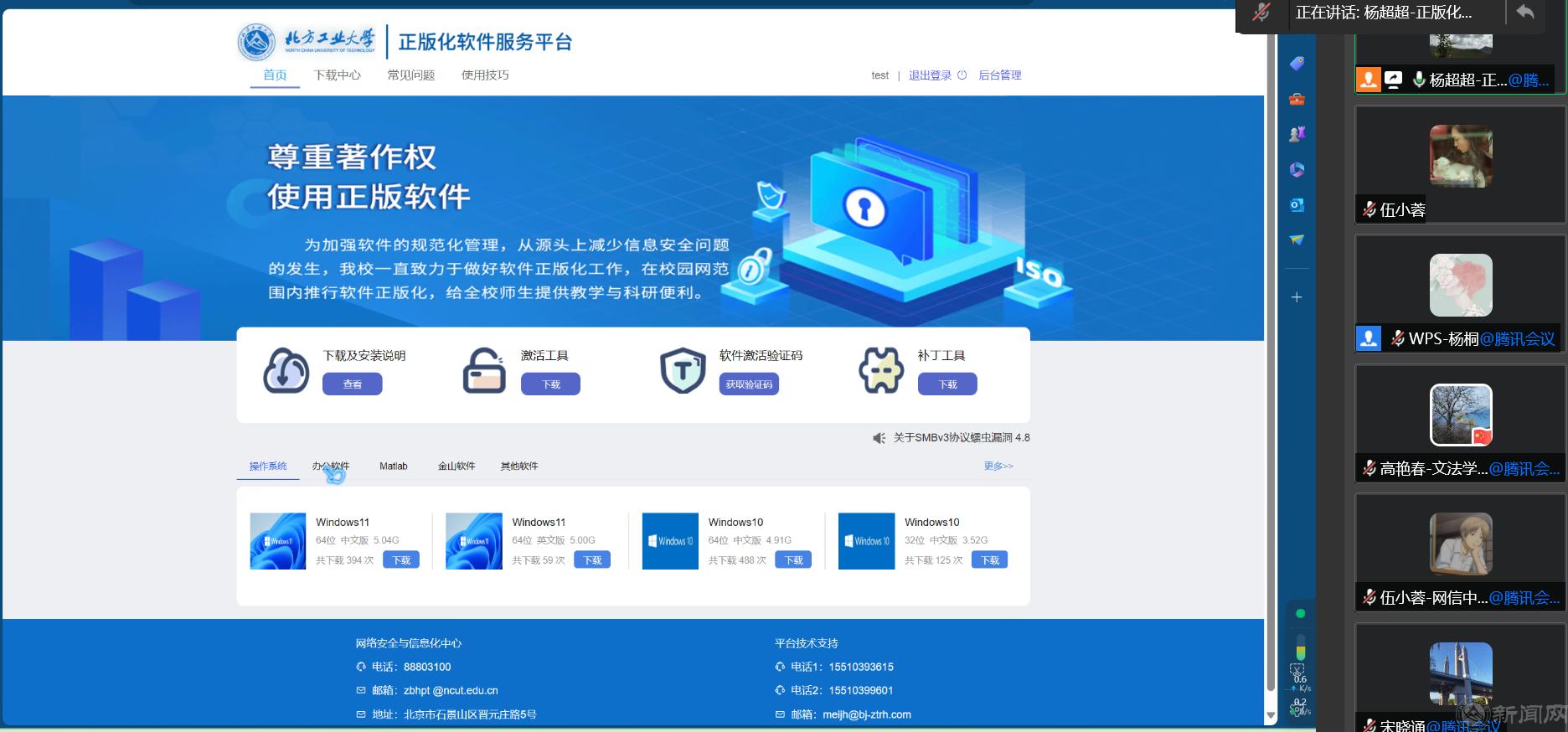 會(huì)議主要介紹了國家及北京市實(shí)施軟件正版化的相關(guān)政策要求、學(xué)校“正版化軟件服務(wù)平臺(tái)(http://software.ncut.edu.cn/)”的操作使用方法及WPS 365教育版的安裝、激活、使用方法。