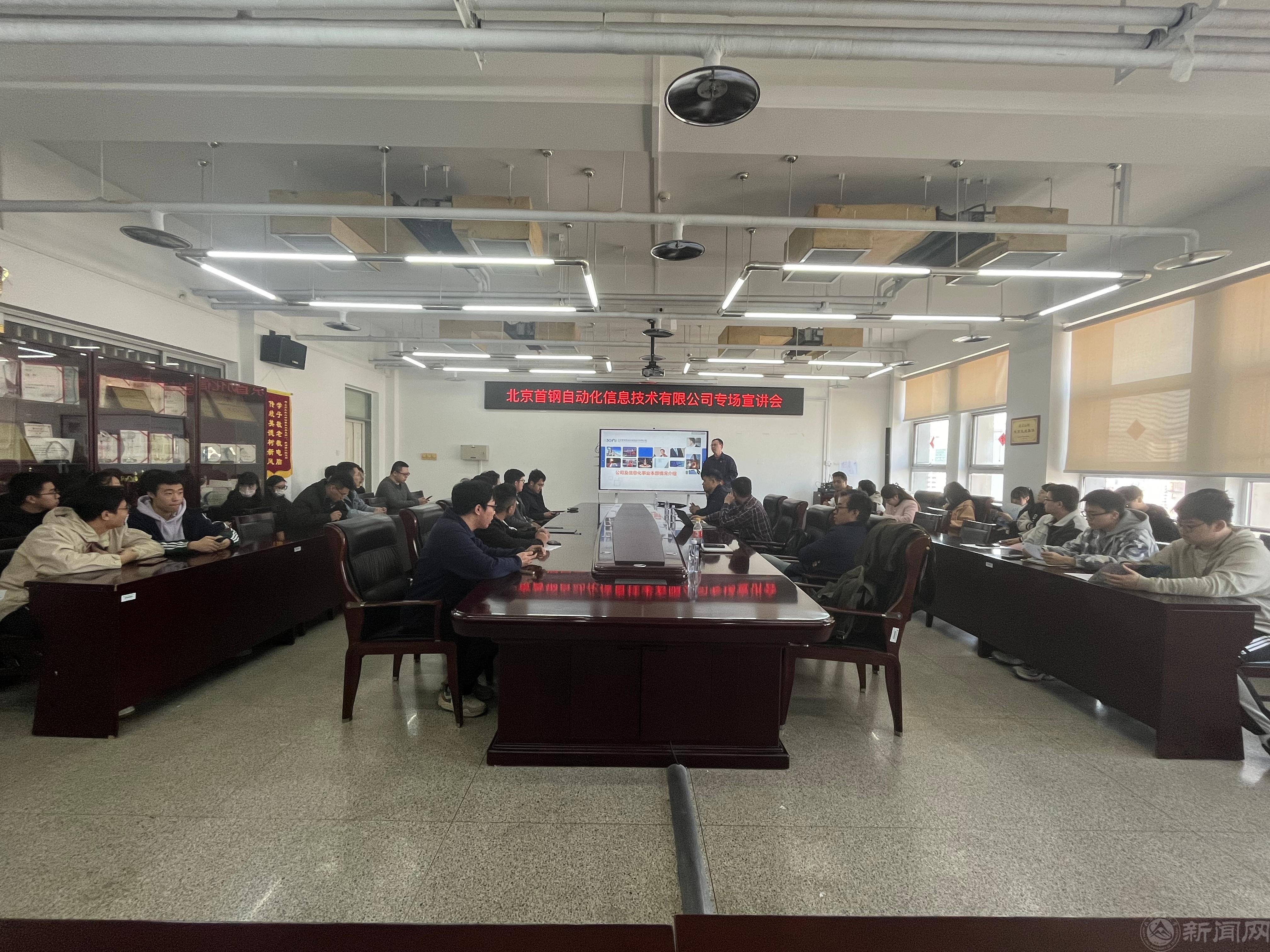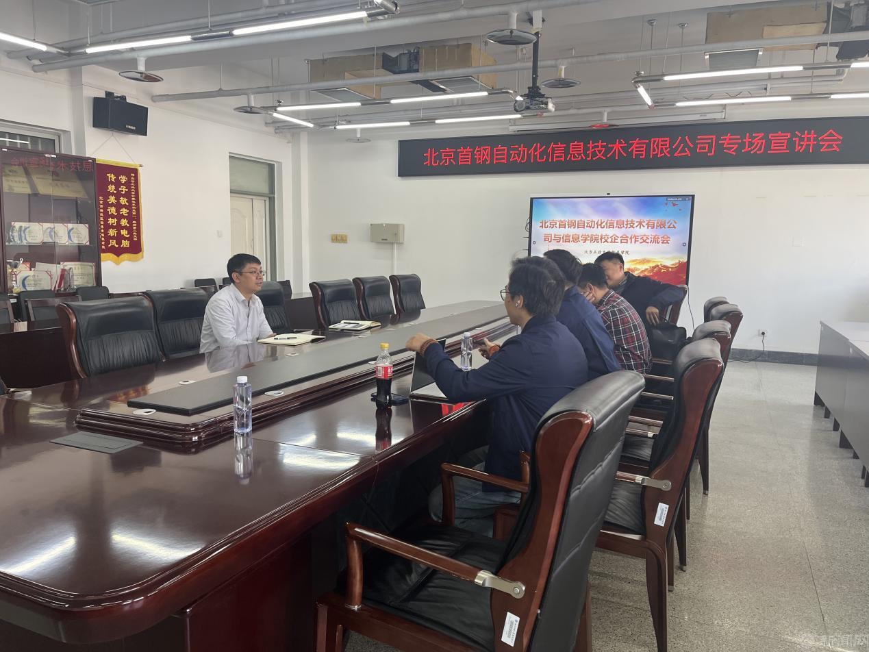 近期,信息學院邀請北京首鋼自動化信息技術有限公司(首自信公司)到校開展“追夢百企‘信’你同行”訪企拓崗促就業活動。北京首鋼自動化信息技術有限公司黨支部書記計松、黨支部書記趙艷春、黨支部書記趙建民和部長助理李斌以及公司相關部門工作人員到場。信息學院黨委副書記陳衛、就業輔導員魏靜、畢業班輔導員以及60余名畢業班學生參加了本次活動。