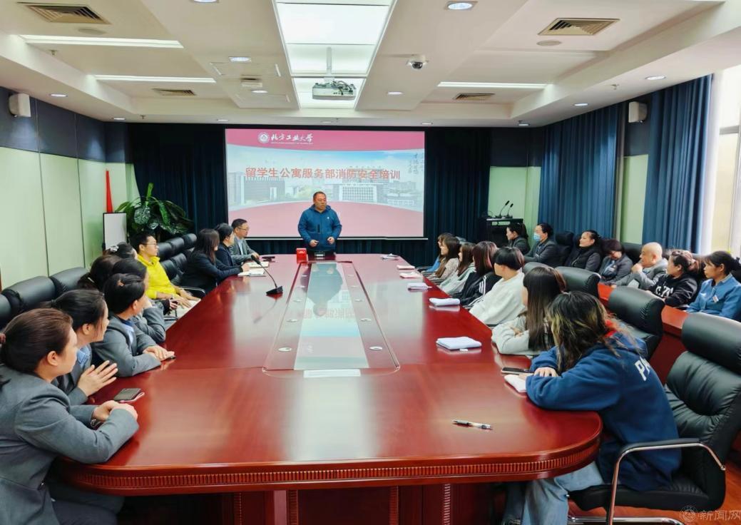 安穩部朱剛老師介紹了消防器材的使用方法,并進行了現場指導。在場的每一位留學生和員工,都親身體驗了滅火器和消防栓“真滅火”演練。