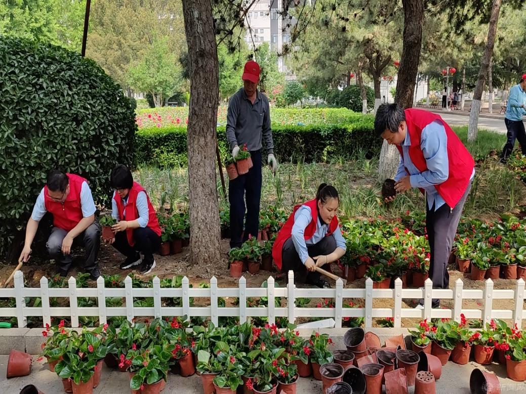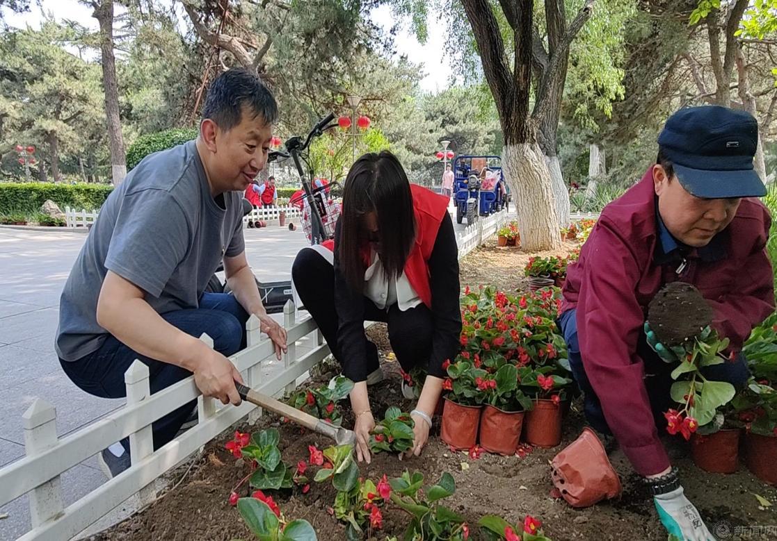 活動現(xiàn)場,全體黨員和積極分子身穿紅色馬甲,充分發(fā)揚后勤精神,個個干勁十足。在綠化師傅們的悉心指導(dǎo)下,大家用鋤頭和鏟子挖坑,栽種海棠花苗。經(jīng)過大家共同努力,新栽植的海棠花在毓秀園展現(xiàn)出勃勃生機(jī)。
