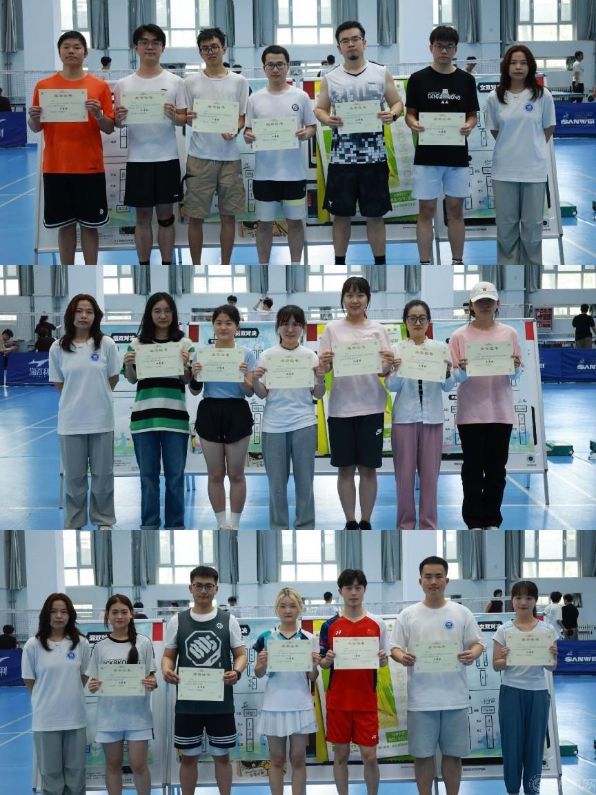 在激烈的比賽之中,雙方皆是好球連連,也相互為對手的好球喝彩鼓舞,賽后各隊隊員均在網前相互握手,以示敬意,也充分體現了尊重對手、尊重比賽的體育精神。經過一天的激烈角逐,最終軟專研22班陳鑫鑫、電科研22高浩楠同學奪得男雙冠軍,網安研23郭冉、計研23張儀琳同學獲得女雙冠軍,通信專研22庫俊華、電科研23張瑜同學奪得混雙冠軍。研究生輔導員王免老師為獲獎選手頒獎。