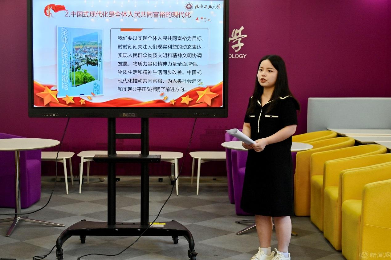 方苧慧同學以“青春為中國式現代化挺膺擔當”為主題,帶領大家共同學習貫穿黨的二十大報告全篇的一個關鍵詞——中國式現代化。了解中國式現代化的理論來源、五個特征,引導同學準確理解、科學領悟中國式現代化的科學內涵。黨的二十大報告擘畫了全面建成社會主義現代化強國的宏偉藍圖和實踐路徑,這正是青年人成長和施展才干的舞臺,這也需要青年朋友們一起共同奮斗來實現。