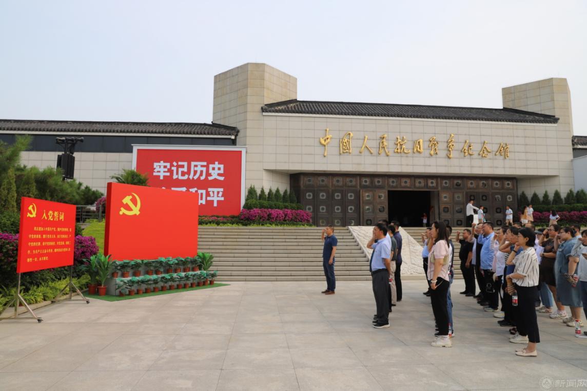 在抗日戰爭紀念館前,全體黨員面向黨旗整齊列隊,莊嚴舉起右手重溫入黨誓詞,錚錚誓言表達著對黨的無限忠誠和崇高敬意,激勵著全體黨員不忘初心,牢記使命,堅定不移聽黨話、跟黨走。
