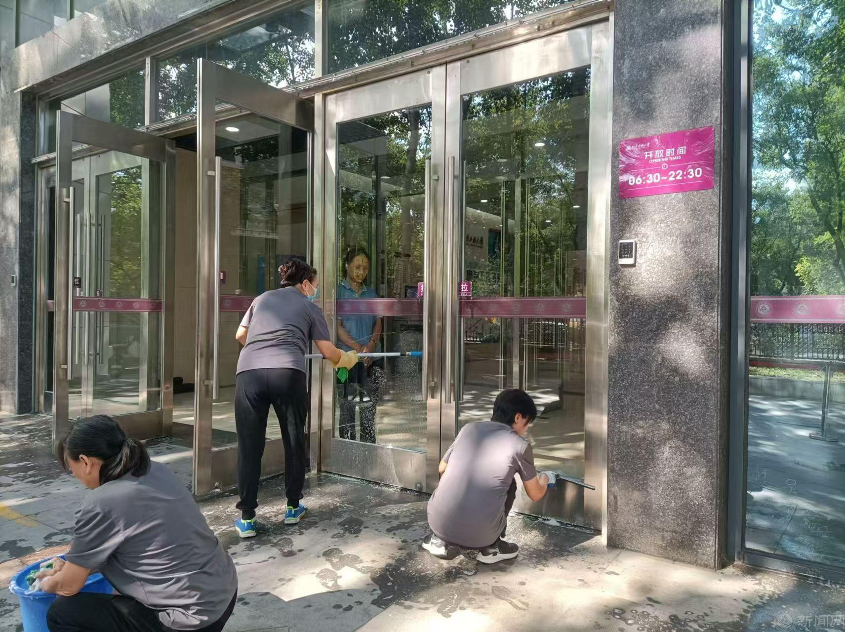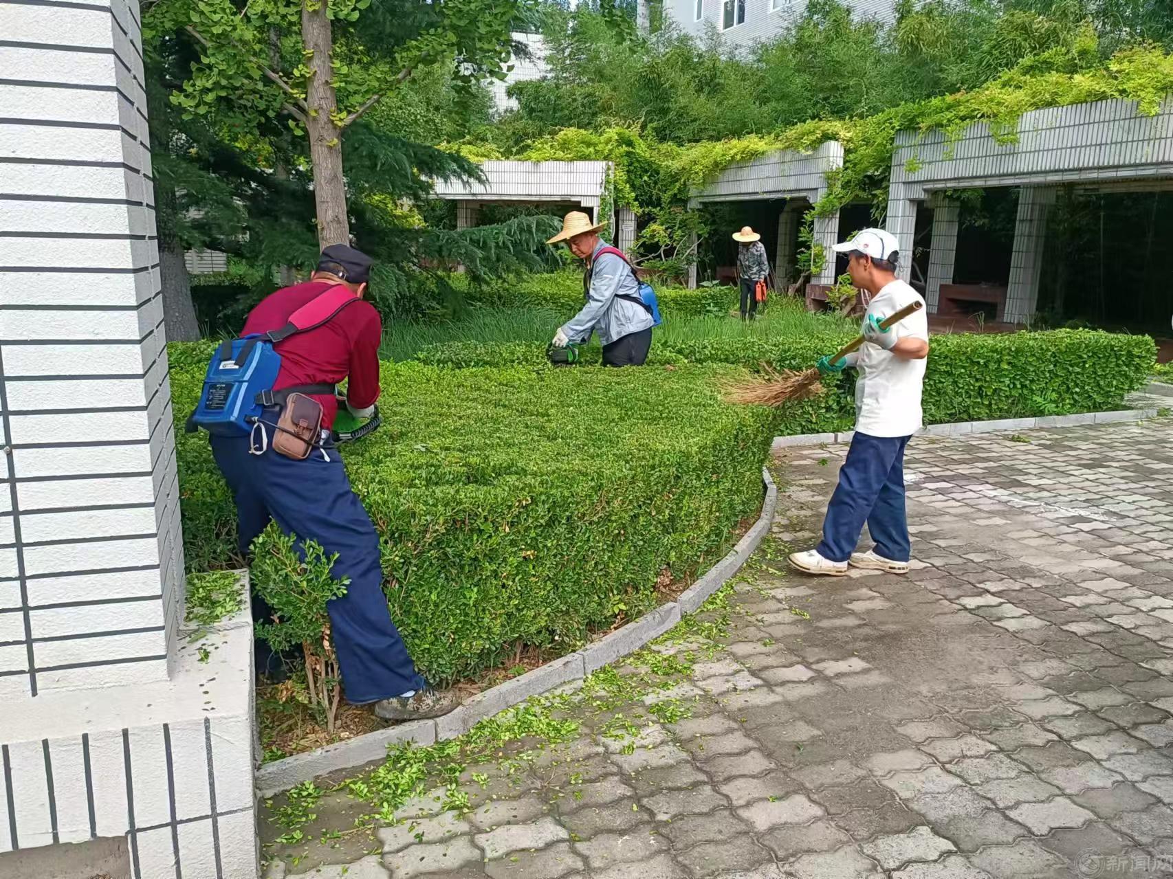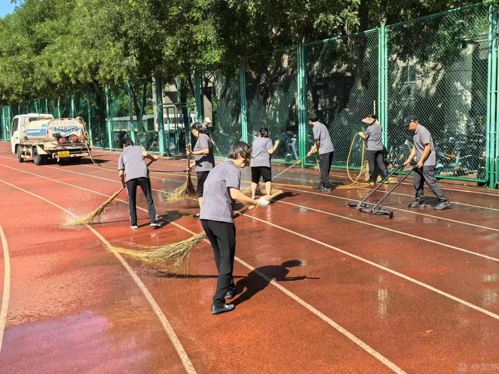 綠化班全體員工通力協(xié)作,更換敦品樓前花壇花卉600余株、校南門及旗桿處擺放花壇2個(gè)、中心花園月亮門處擺放花缽2個(gè),清除校內(nèi)雜草80000余平米、修剪草坪50000余平米、修剪綠籬6000余平米,打造校園小微景觀。保潔人員沖洗校園主干道、清理污跡,擦拭室內(nèi)外路牌、指示牌等公共設(shè)施,全范圍進(jìn)行衛(wèi)生消殺,營造干凈舒適、整潔美觀的校園環(huán)境。