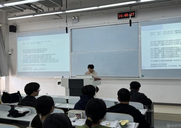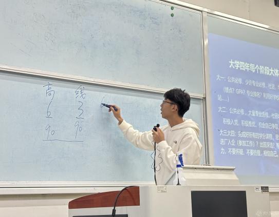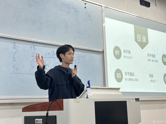 計類專業(yè)分享會上,考研至本校的劉桁銘同學(xué)分享了自己在課程學(xué)習(xí)、競賽、考研、就業(yè)方面的豐富經(jīng)驗,并著重介紹了科研競賽的相關(guān)信息。保研至本校的劉苑同學(xué)詳細(xì)講述了保研的時間流程,提醒同學(xué)們要根據(jù)往年目標(biāo)學(xué)校的夏令營、預(yù)推免的時間、做好初步的準(zhǔn)備。并祝福同學(xué)們努力學(xué)習(xí),擁有美好的未來。留學(xué)至新南威爾士大學(xué)的顏弈杰同學(xué)告訴同學(xué)們要不斷提高自身的競爭力,并著重強(qiáng)調(diào)了科研和競賽的重要性。他還向同學(xué)們推薦了關(guān)注賽事的網(wǎng)站和發(fā)表科研論文的博主,為同學(xué)們提供了寶貴的經(jīng)驗。另一位留學(xué)的劉祚先同學(xué)認(rèn)為績點和語言成績是申請國外院校的重要因素。另外,一份充實的簡歷是申請環(huán)節(jié)中必不可少的一部分,提升簡歷的充實度要從項目和競賽入手。留學(xué)杜克大學(xué)的李天昊同學(xué)通過視頻方式介紹了自己從準(zhǔn)備語言考試,到撰寫申請文書,再到面試準(zhǔn)備的全過程。他強(qiáng)調(diào)了時間管理的重要性,建議同學(xué)們提前規(guī)劃,合理安排時間。參軍入伍的李昱江同學(xué)介紹了他的軍旅生涯以及各類征兵政策,他鼓勵有志青年要積極投身國防,為國家的安全和發(fā)展貢獻(xiàn)力量。