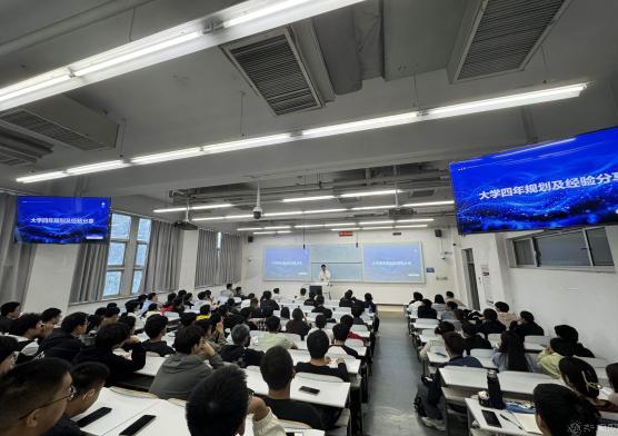 電類專業(yè)分享會上,保研至中國科學(xué)院信息工程研究所的何瑞同學(xué)向新生們分享了他的保研經(jīng)歷。詳細(xì)介紹了保研的流程、準(zhǔn)備策略以及面試技巧,鼓勵同學(xué)們提前規(guī)劃,積極準(zhǔn)備。保研至東南大學(xué)的羅其榕同學(xué)從個人介紹、自身規(guī)劃兩方面出發(fā),對新生的學(xué)習(xí)、科研競賽等方面作了詳細(xì)的建議。作為集體上岸宿舍的成員之一,考研至本校的馬天禹同學(xué)分享了他的考研心得。為新生解答學(xué)分績點的計算方式,并強(qiáng)調(diào)同學(xué)、宿舍關(guān)系相處融洽會為自己的大學(xué)生活增添不一樣的精彩。留學(xué)至悉尼大學(xué)的楊明昊同學(xué),從整體規(guī)劃、語言準(zhǔn)備、擇地?fù)裥!⑵溆鄿?zhǔn)備四方面為有志于留學(xué)的同學(xué)提供了寶貴的參考。參軍結(jié)束的張宸、宋駿同學(xué)通過訓(xùn)練照片介紹了他們的部隊生活,并詳細(xì)解讀退役士兵復(fù)學(xué)入學(xué)、就業(yè)創(chuàng)業(yè)的政策。入職國企國創(chuàng)中心的郭駿豪同學(xué)就自己的大學(xué)經(jīng)歷,詳細(xì)回答了三個問題:畢業(yè)后能從事哪些工作?如何培養(yǎng)與工作相關(guān)的能力?考研和就業(yè)如何選擇?
