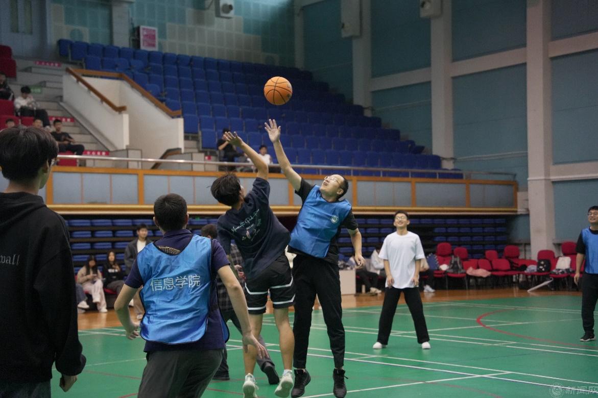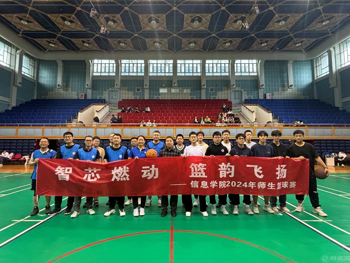 智“芯”燃動,籃韻飛揚。“籃”不住熱愛的追逐,“籃”不住青春的活力,“籃”不住昂揚的斗志,讓青春揮灑汗水,讓球場承載夢想。為了豐富師生的課余生活,增進師生間的情感溝通與交流,增強師生的凝聚力,充分展現師生在奔跑新征程中用心向上的風貌。10月18日,信息學院在學校體育館二層舉辦了一場別開生面的師生籃球友誼賽。信息學院領導班子成員、教師代表、2024級新生代表參與活動。一場師生間的籃球盛宴火熱上演,吸引了眾多師生前來觀戰。