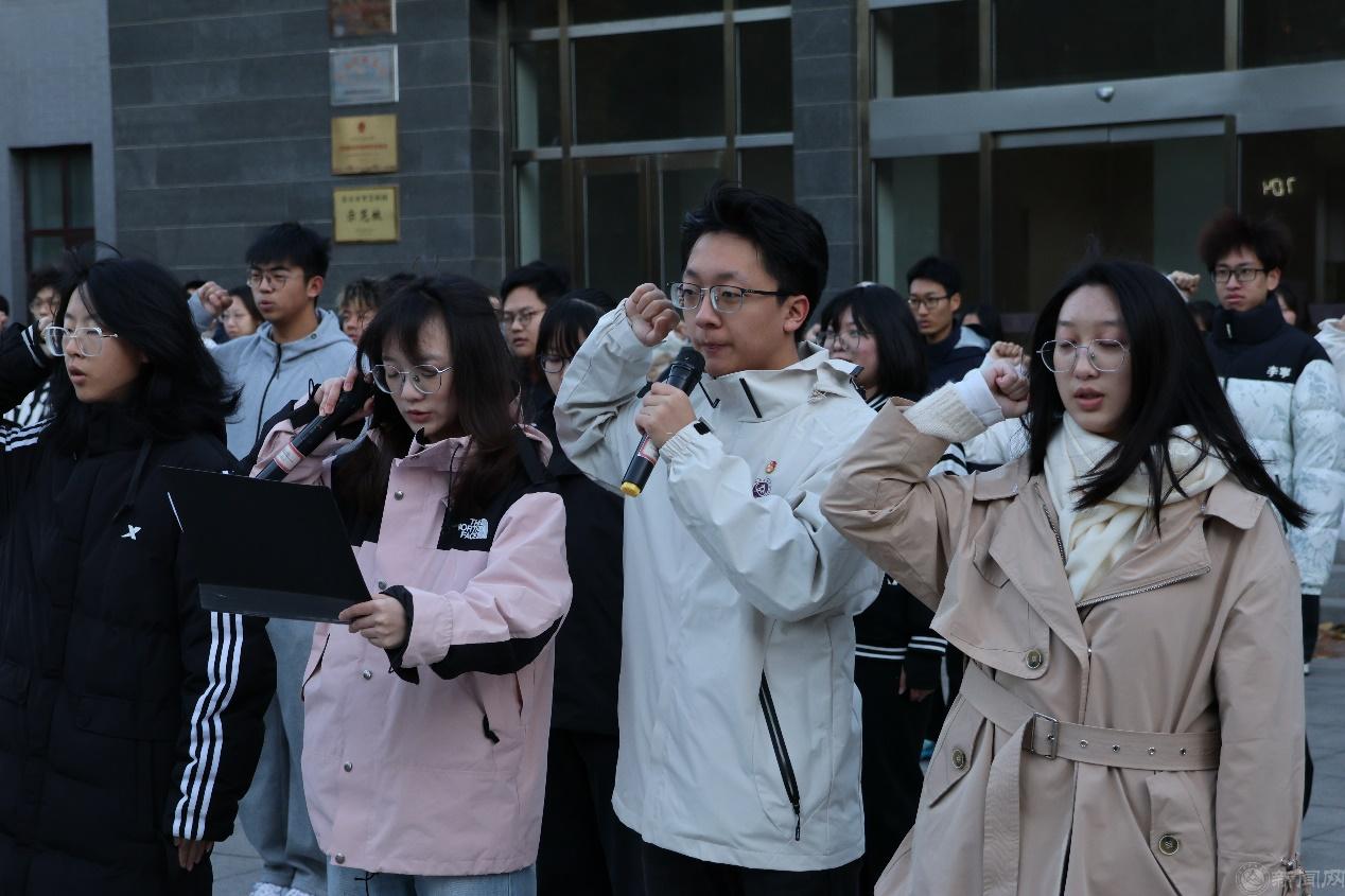 在學(xué)院團(tuán)委副書記趙柏翔同學(xué)領(lǐng)誓下,新團(tuán)員進(jìn)行集中入團(tuán)宣誓、老團(tuán)員重溫入黨誓詞。全體新老團(tuán)員面向團(tuán)旗,舉起右手,莊嚴(yán)宣誓!錚錚誓言,是團(tuán)員們對團(tuán)組織的無限忠誠和為共產(chǎn)主義事業(yè)奮斗的堅定信念。錚錚誓言,展現(xiàn)了團(tuán)員們爭做青年先鋒、同輩楷模的壯志與豪情。