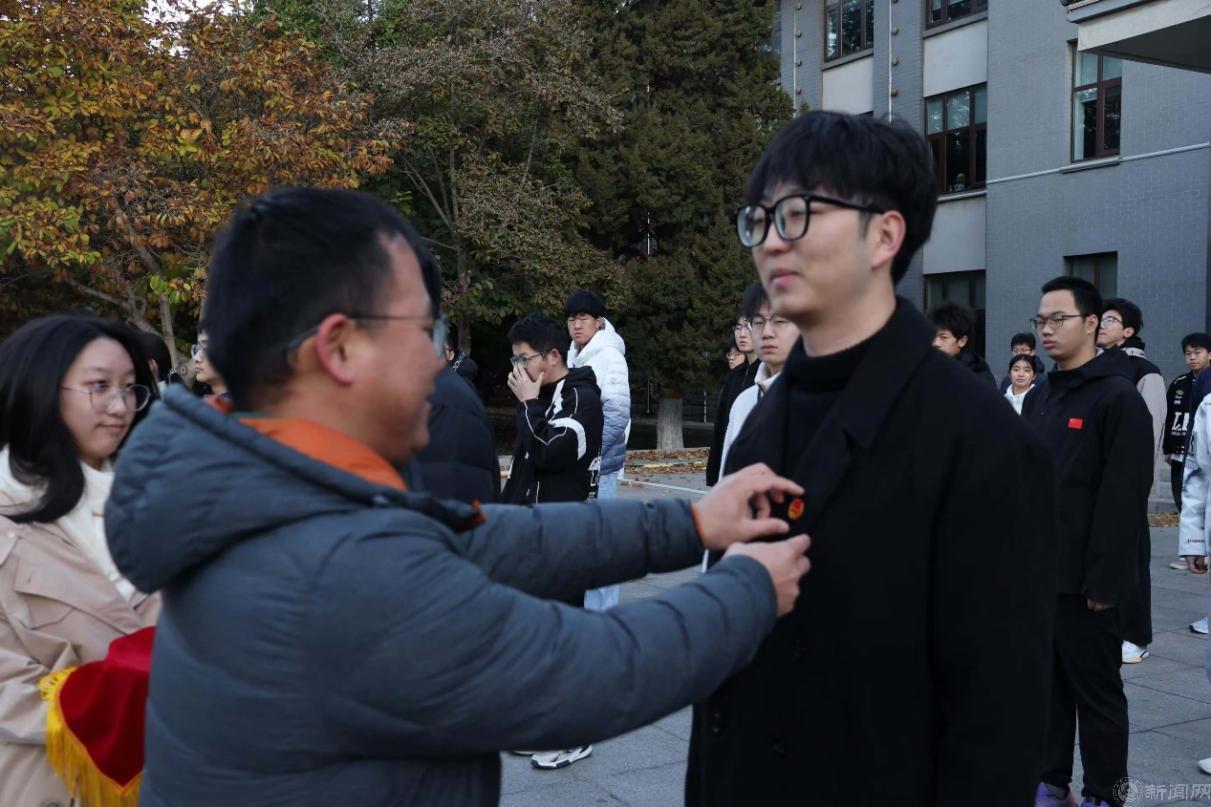 升旗儀式后,學(xué)院團(tuán)委書記楊和家老師為新團(tuán)員代表佩戴了象征榮譽(yù)與責(zé)任的團(tuán)徽,祝賀新團(tuán)員加入共青團(tuán)大家庭,開啟人生新篇章。老師的期許與囑托都凝聚在這一枚紅色閃耀的團(tuán)徽上,這一刻,歷史的接力棒已傳到這一群新生力量當(dāng)中,這不僅是一份榮譽(yù),更是一份責(zé)任與擔(dān)當(dāng)。
