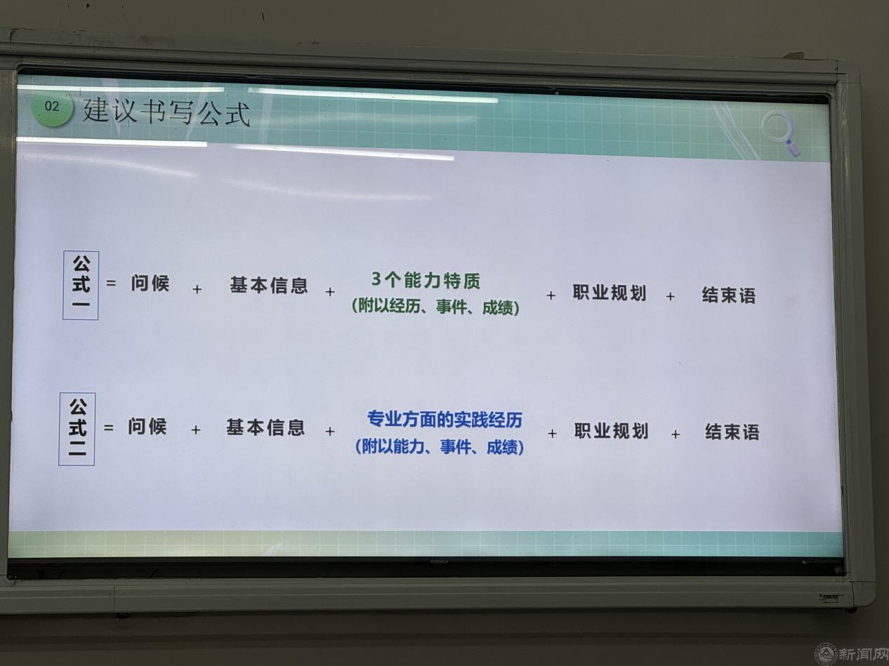 霍俊老師結合當前就業形勢,深入分析了行業發展趨勢和就業市場需求。并以求職規劃與網申投遞策略、校園招聘高分簡歷優化技巧、面試高頻問題解答思路串講三個方面逐一為學生講解了求職技巧、一對一簡歷制作、面試策略等重要內容,讓學生們對就業過程有了更清晰的認識。霍老師尤其強調簡歷的重要性:“好的簡歷是敲門磚,有效的自我介紹才能做到就業的‘開門紅’”。在具體的方法上,投遞簡歷要兼顧海投,精投兩種方法。通過生動的案例和實用的建議,讓學生們對就業過程有了更清晰的認識。