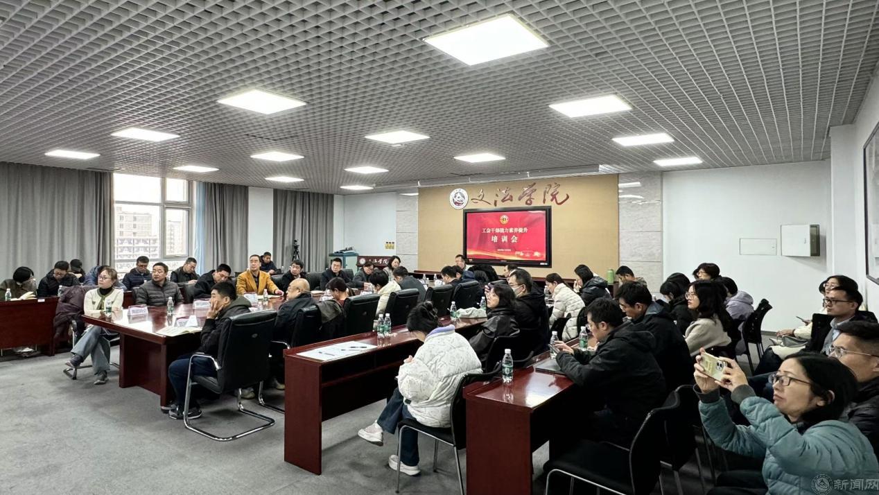 11月25日上午,學校工會干部能力素養提升培訓會在翰學樓710文法學院學術報告廳舉行。培訓采取“線上+線下”相結合的方式進行,各分工會主席、委員、工會小組長及文體協會負責人和教代會工代會代表100余名工會干部參加了培訓。培訓會由工會常務副主席黃睿主持。