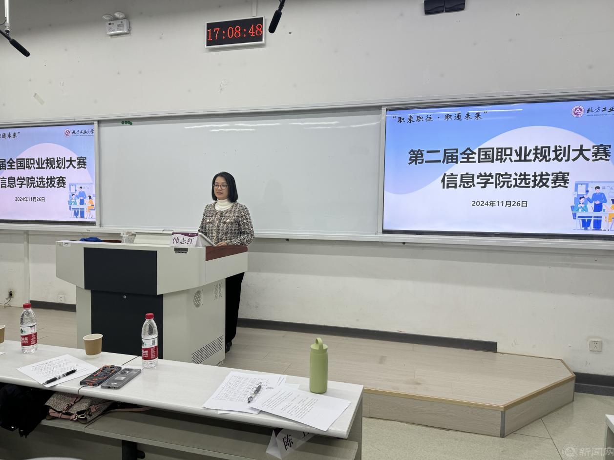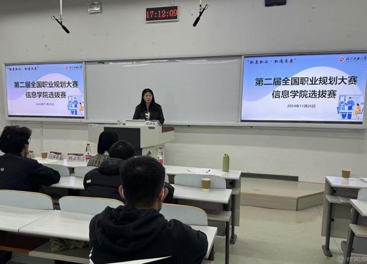 為加強高校生涯教育和就業指導,引導學生樹立正確的職業觀和就業觀,提高大學生職業生涯規劃意識,11月26日,信息學院在瀚學樓舉辦第二屆全國職業規劃大賽信息學院選拔賽。本次活動邀請北京凌華峰通信技術有限公司人事經理韓志紅、華為終端有限公司服務業務HRBP劉珂汝擔任評委,學院黨委副書記陳衛、輔導員魏靜、王免、王鑫淼及16位參賽選手參與活動。