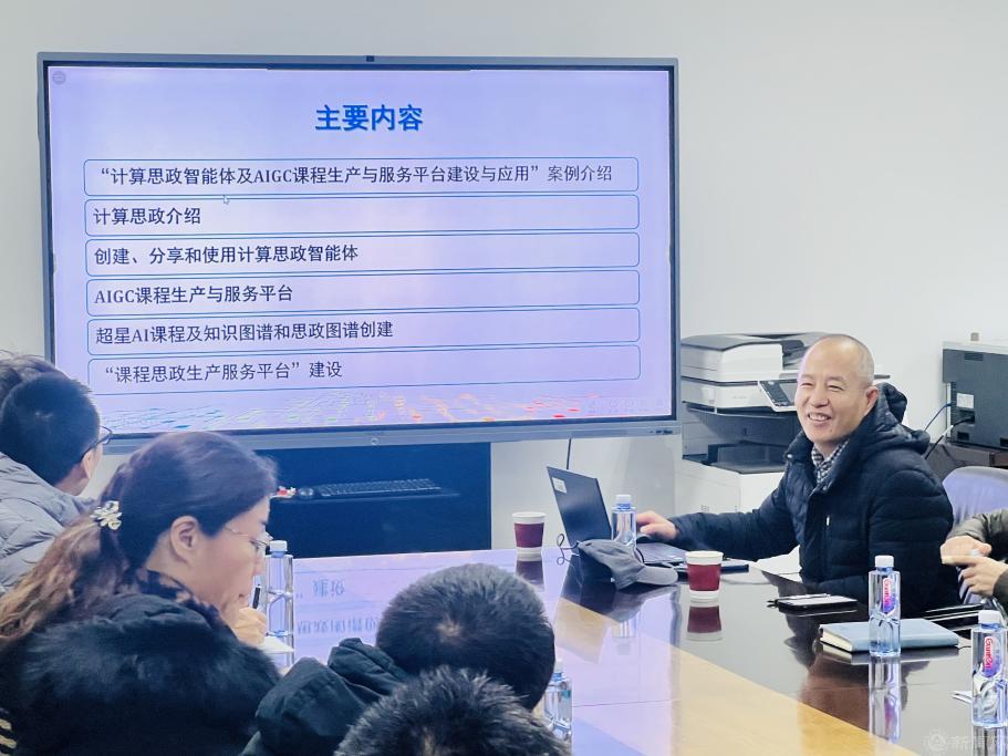 會議邀請國家級課程思政示范課負責人和教育部“人工智能+高等教育”應用場景典型案例負責人杜春濤教授作專題報告。杜春濤以《課程思政生產與服務平臺建設》為題,深入淺出地講解了計算機課程中思政教育的融合路徑,以及如何運用人工智能技術挖掘思政元素、優化教學效果等內容。杜老師的講座內容充實、案例貼切,為與會教師傳授了人工智能賦能課程思政教學的實戰經驗。