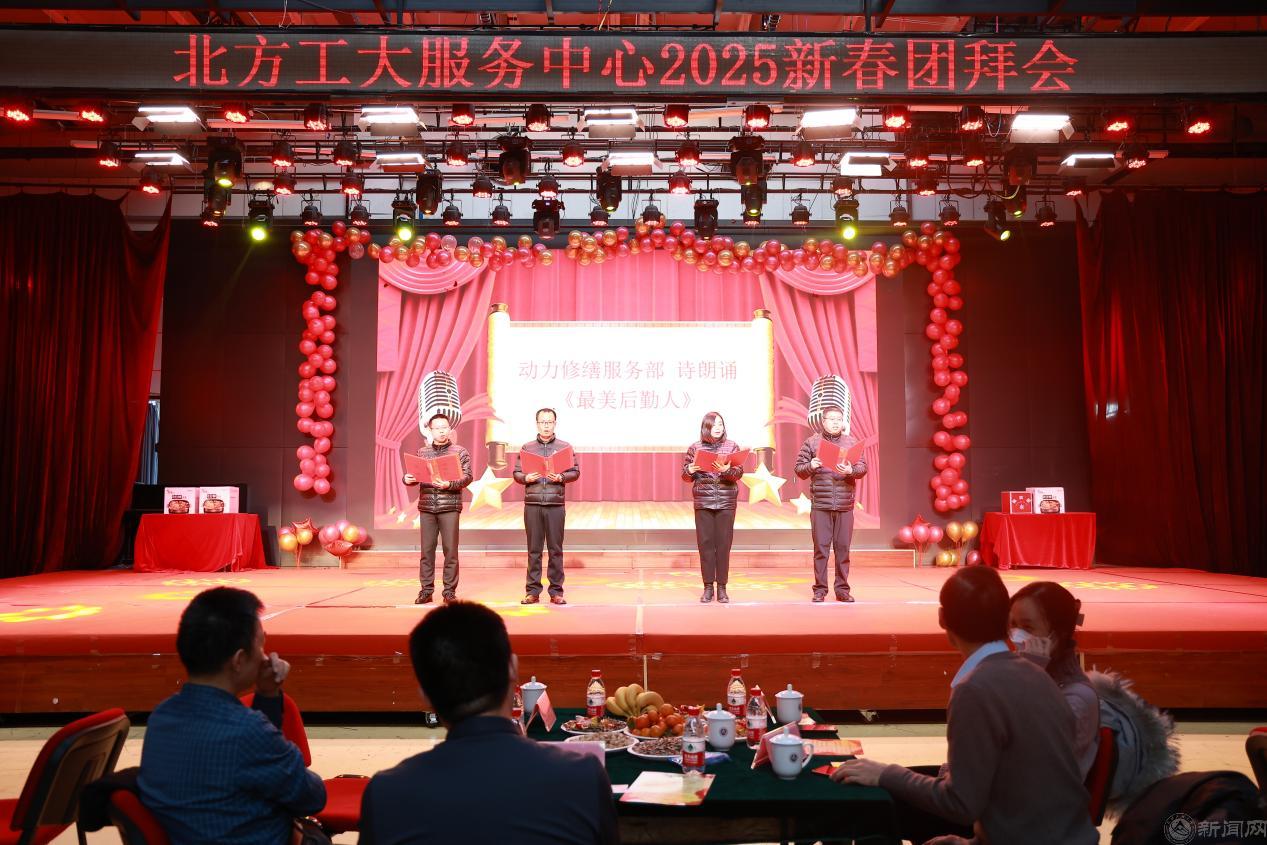 祥龍擺尾辭舊歲,金蛇納福啟新程。1月10日,服務中心在學生服務樓多功能廳舉辦2025年“同心共筑夢·聚力啟新程”新春團拜會。宴會現場張燈結彩、喜氣洋洋,服務中心200余位職工歡聚一堂,共迎新春。學校后勤基建處、資產處、財務處、審計處、安穩部、原服務中心領導、北京北方科工、北京高校后勤服務有限責任公司領導班子成員等出席活動。
