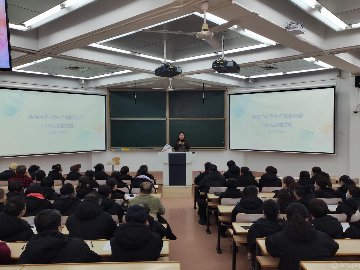 為進一步提升服務質量與管理水平,學生公寓服務部于2月18日,在廣學樓西301教室組織了一場面向全體員工的上崗培訓,本次培訓由學生公寓服務部張雪主講,參會人員共70人。