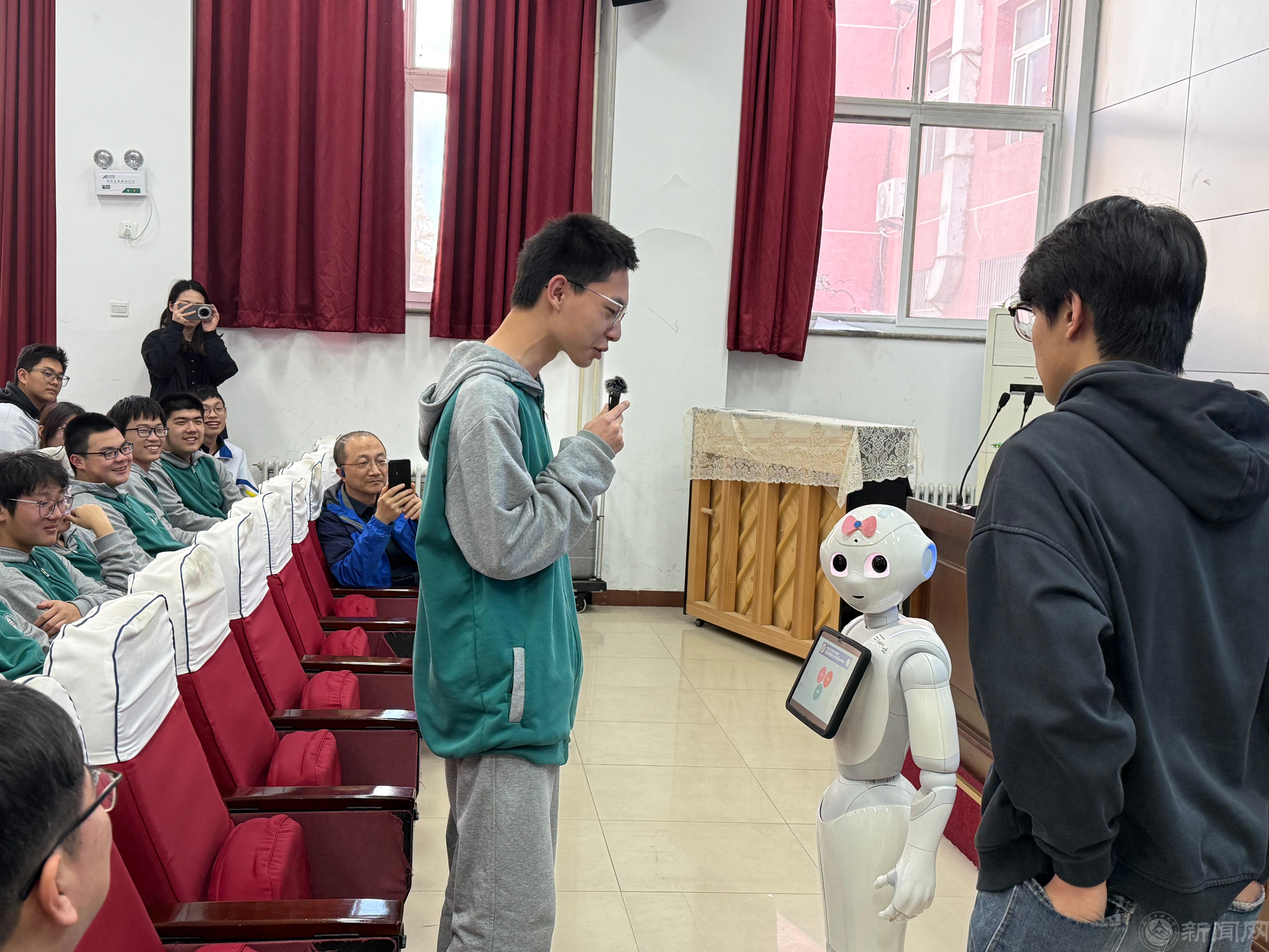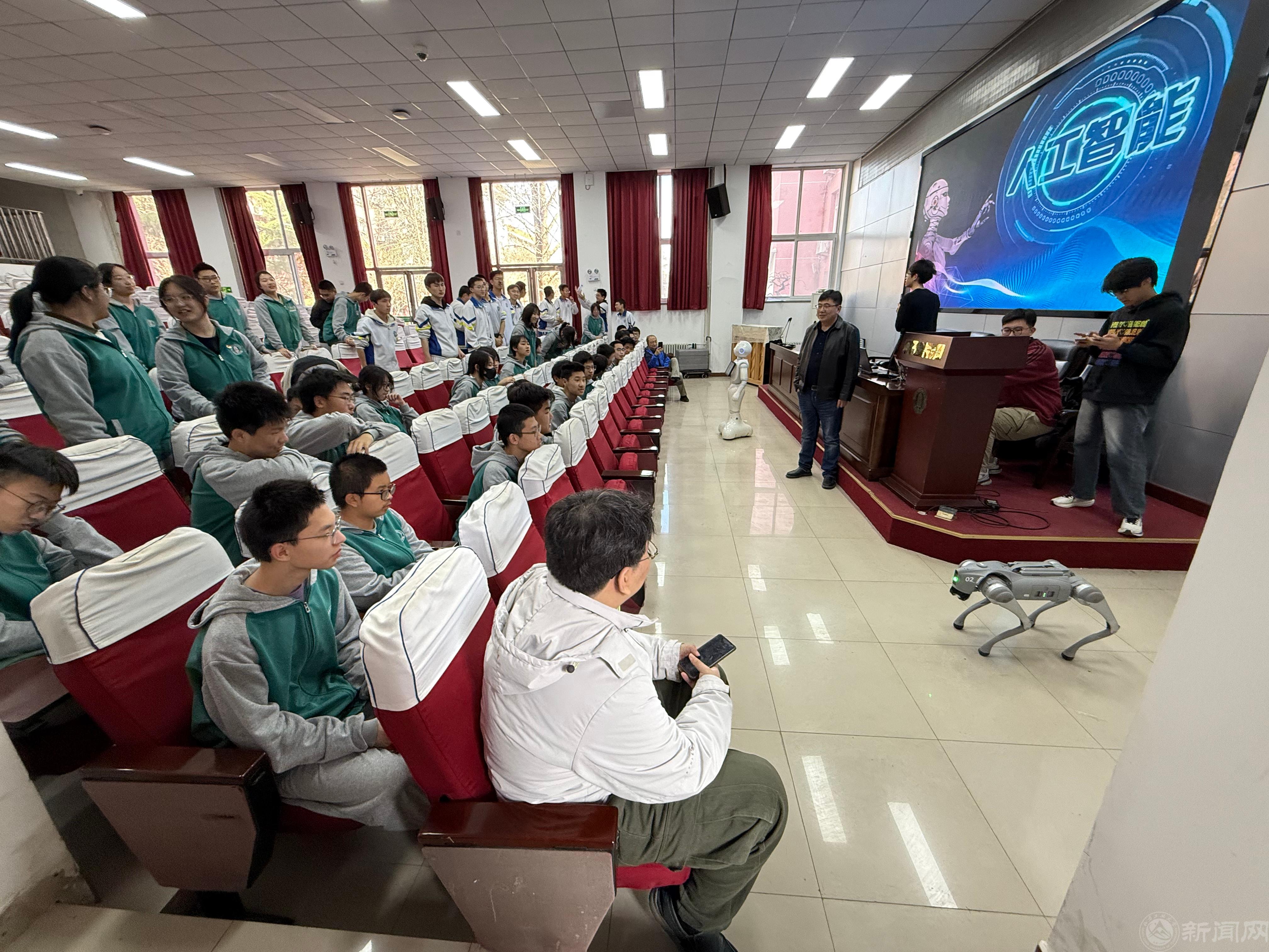 活動中,由智能機器人“小毓”作為“宣講員”,向北京市第十中學高中部的同學們介紹了北方工業大學辦學歷史、辦學特色、招生政策以及信息學院及人工智能專業情況,并為同學們做了人工智能的科普報告。之后“小毓”還表演了舞蹈、開放式對話及“AI猜年齡”等才藝。隨后,還為同學們演示了“四足機器狗”這款新穎的“科技萌寵”。智能機器人“小毓”及機器狗的諸多功能都由人工智能專業本科生研發,她可以通過基于計算機視覺的人臉檢測技術猜出同學們的年齡,還可基于大模型與同學們進行幽默地問答和會話,可以通過手勢控制機器狗做動作,這些都引發同學們陣陣驚嘆,激起了同學們對智能技術的好奇心,并將活動氣氛推向高潮。