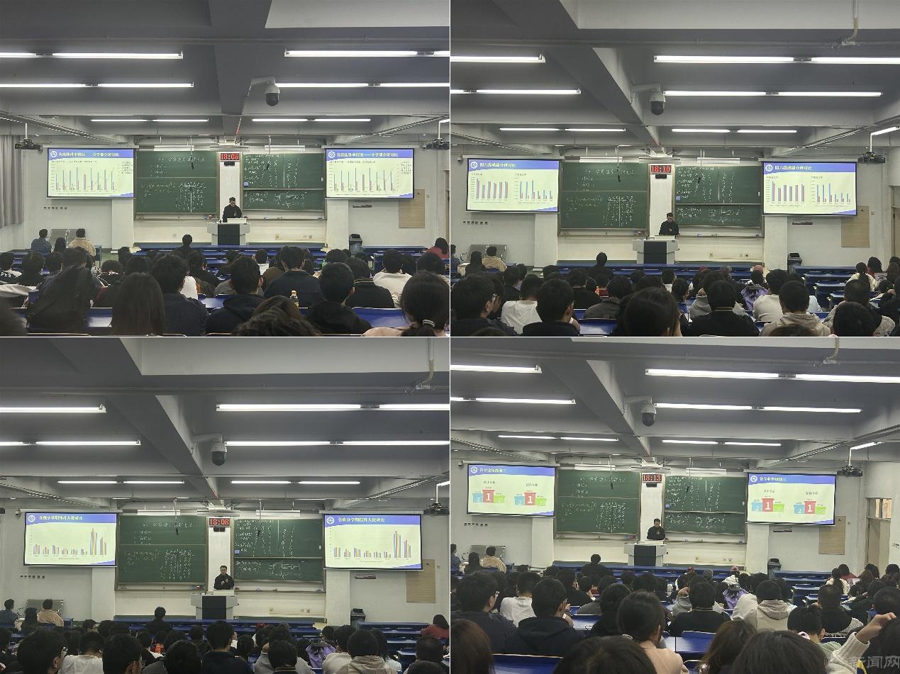班會通報了2023級學(xué)生三個學(xué)期以來的學(xué)業(yè)數(shù)據(jù),重點對各班級、各專業(yè)在各學(xué)期的掛科人數(shù)、掛科率、掛科門數(shù)、補(bǔ)考通過率及年級排名情況進(jìn)行對比分析,班會還通報了2023級學(xué)生截至目前各班級、各專業(yè)的四六級報考通過率、班級通過率及排名情況。通過可視化的數(shù)據(jù)呈現(xiàn),進(jìn)一步增強(qiáng)學(xué)生自我反思意識,凝聚榜樣力量,激發(fā)班級間“比學(xué)趕超”的良性競爭氛圍,為構(gòu)建“全員參與、全程跟蹤、全方位覆蓋”的學(xué)風(fēng)治理體系奠定堅實基礎(chǔ)。