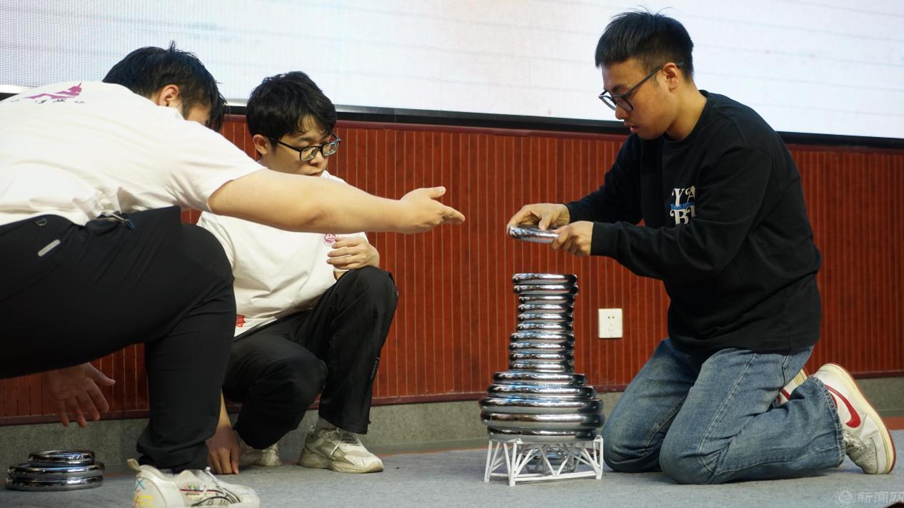 本次承載力大賽要求使用A4打印紙、普通膠水等規(guī)定材料,綜合運(yùn)用理論力學(xué)、材料力學(xué)和結(jié)構(gòu)力學(xué)等知識制作完成高度≥9cm、寬度≥8cm、長度(跨度)≥21cm、質(zhì)量90g之內(nèi)的橋梁結(jié)構(gòu),并對其進(jìn)行力學(xué)分析和承重測試。大賽吸引了來自全校63支參賽隊伍共計174名參賽選手,通過預(yù)賽產(chǎn)生了9組決賽隊伍。決賽現(xiàn)場氣氛熱烈,經(jīng)過團(tuán)隊作品展示和結(jié)構(gòu)承重測試環(huán)節(jié)的激烈角逐,最終王瑞、馬爾瀚和夏子賀小組的作品以承重44kg、綜合評分排名第一的成績榮獲冠軍。