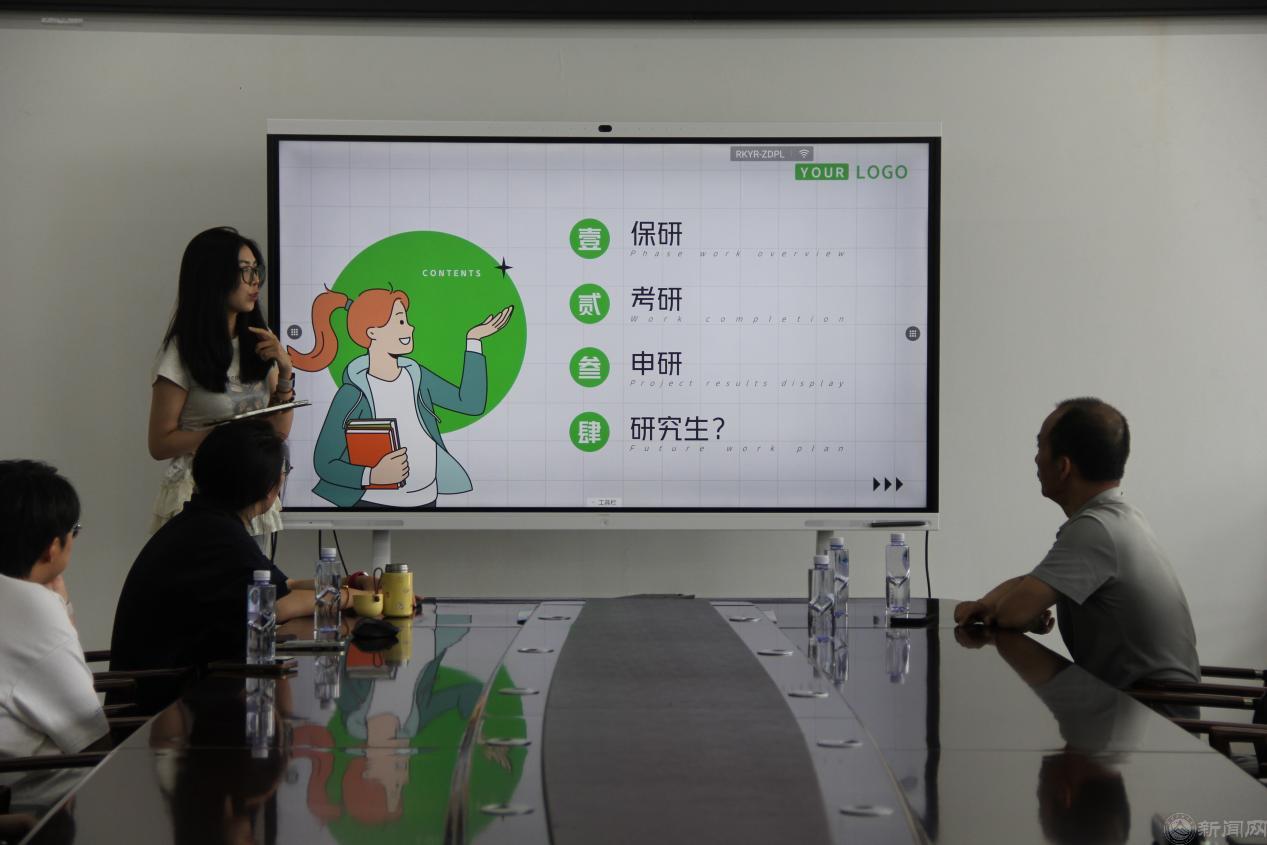 在實踐團精心籌備下,計24-3班師生與校友代表劉苑(成功保研)、高子妍(成功考研)、葉孟琦(入職美團)齊聚學院會議室,展開深度訪談對話。三位校友結合自身成長軌跡,從不同維度分享經驗智慧。