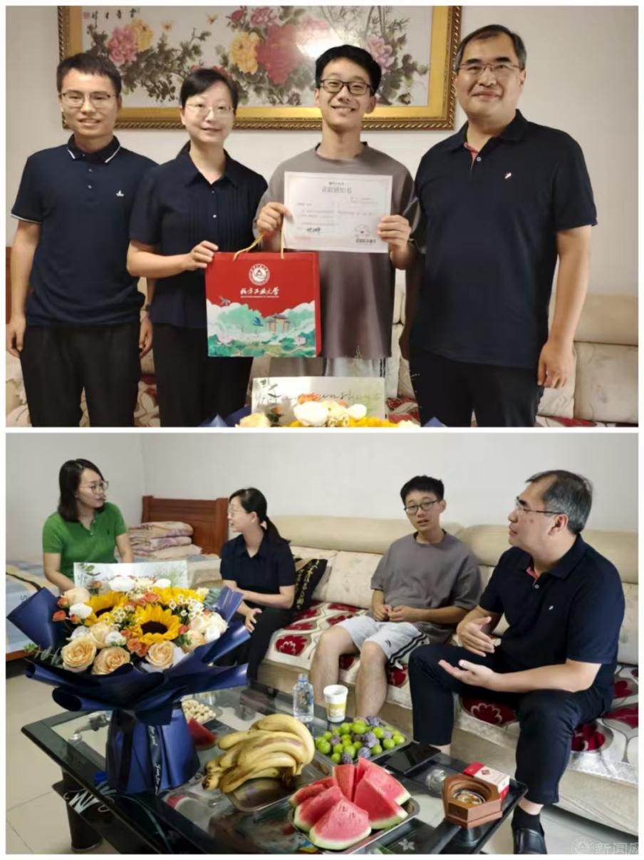 開學(xué)前夕,理學(xué)院黨委書記楊嵩松、院長李冱岸與輔導(dǎo)員熊敏一行,專程赴2025級本科新生楊嘉澍家中,為其送上錄取通知書和學(xué)校特色文創(chuàng)禮品。院領(lǐng)導(dǎo)與新生及家長促膝交談,細(xì)致介紹專業(yè)發(fā)展方向、課程體系結(jié)構(gòu)及個人學(xué)業(yè)規(guī)劃,將學(xué)院的殷切期望和溫暖關(guān)懷提前傳遞至新生家庭。