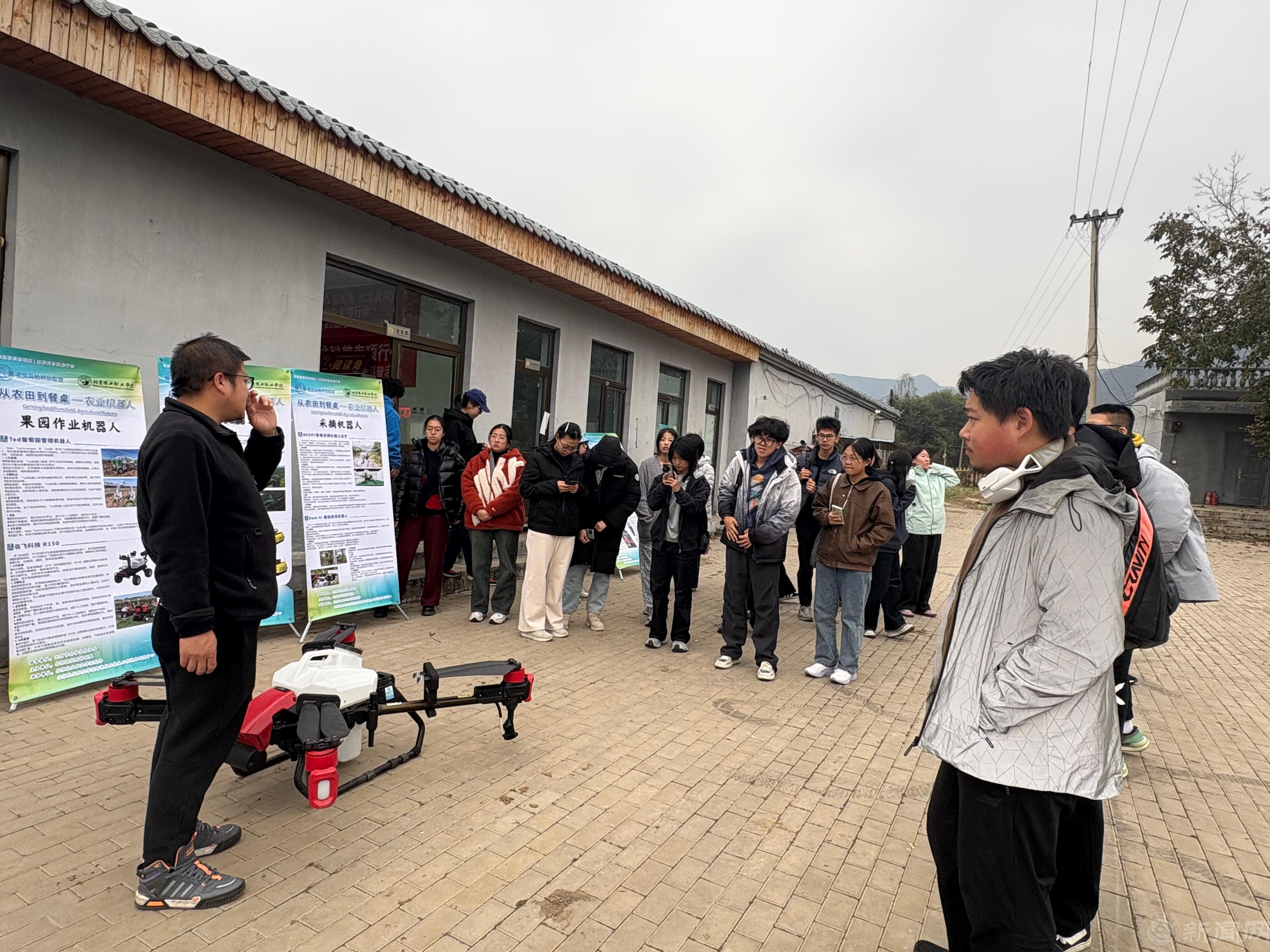 在隨后的觀摩環節中,同學們學習了農業無人機設備的使用。郭博士現場講解了農業無人機如何在實際生產中提升效率、降低成本、保護環境。與傳統人工噴藥相比,農業無人機每小時可噴灑60畝以上,節水省藥30%以上。