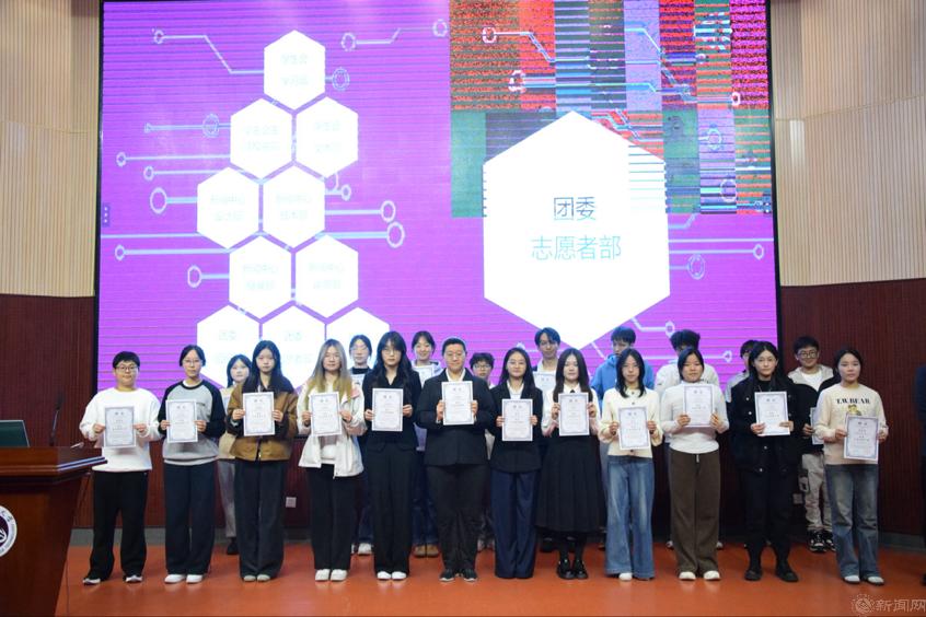 大會以“總結過往、部署新篇、凝聚力量”為主題,現場通過影像資料回顧上一學年團學工作,思想引領走深走實、組織建設提質增效、校園文化亮點紛呈、科創實踐成果豐碩、志愿服務廣受贊譽……一幕幕青年奮進圖景,勾勒出團學骨干“敢擔當、善作為”的青春群像。與會老師為新任團學骨干頒發聘書,一張薄箋承載信任與期許,標志著新學年團學工作正式掀開新篇。