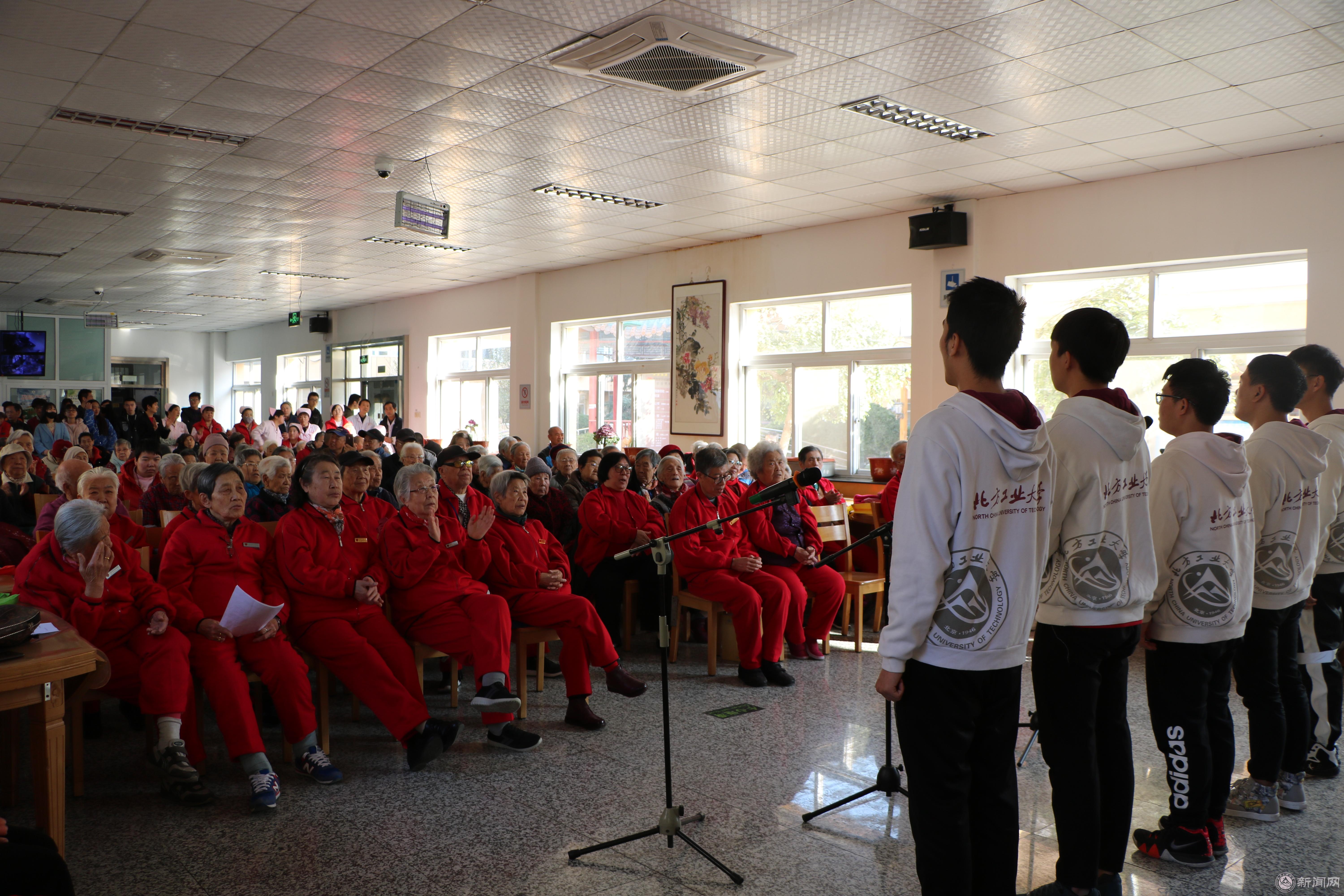 土木工程學院與石景山區社會福利院共建的“親近夕陽”志愿服務活動始于1999年,至今已有二十個年頭,恰逢今年改革開放四十周年,可謂雙喜臨門。活動開始前,志愿者們接來一位行動不便的老人入座,隨后聯歡活動在志愿者們合唱《紅旗飄飄》的歌聲中拉開帷幕,過程中,志愿者們和福利院老人們相繼上臺演出,載歌載舞,親熱互動,臺下的老人們也看得津津有味,不時發出陣陣掌聲。