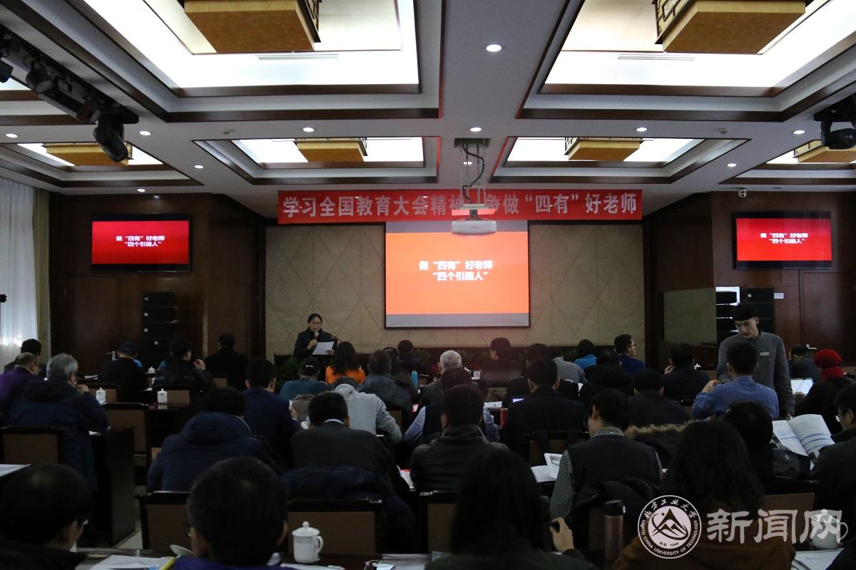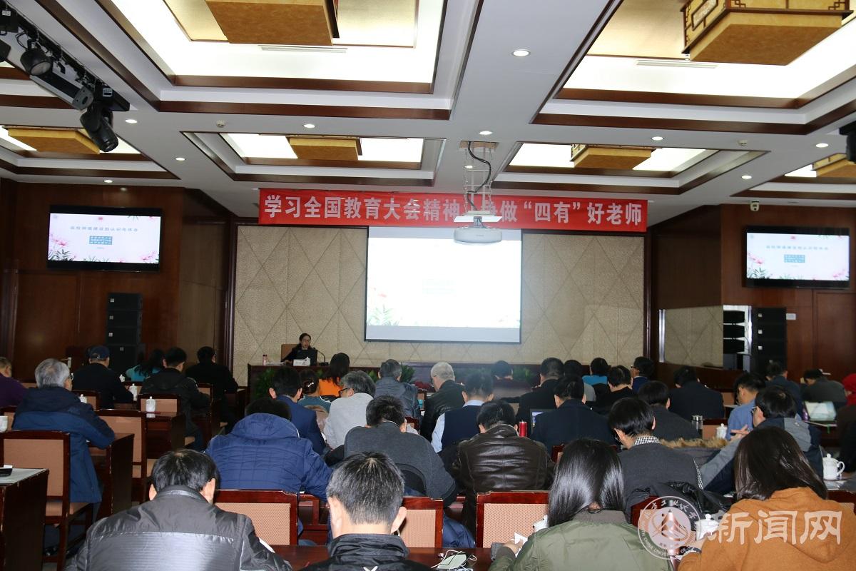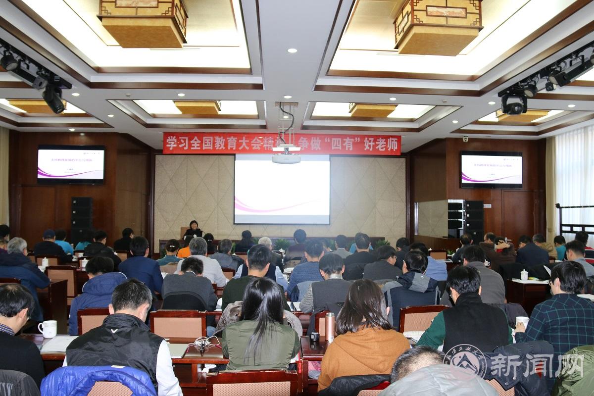 我校人事處處長(zhǎng)、教師工作部部長(zhǎng)毛燕梅老師作了題為《支持教師發(fā)展的平臺(tái)與措施》的專題報(bào)告。她首先對(duì)學(xué)校近幾年深入推進(jìn)教師師德建設(shè)及職業(yè)素養(yǎng)提高等方面采取的舉措做了概略性的總結(jié)。學(xué)校長(zhǎng)期以來一直高度重視師德師風(fēng)建設(shè),不僅有嚴(yán)格的制度規(guī)定,也有日常的教育督導(dǎo)。然后,她重點(diǎn)圍繞學(xué)?!笆濉卑l(fā)展規(guī)劃、教師發(fā)展與服務(wù)措施、突出本科教學(xué)、強(qiáng)化育人四個(gè)方面來談教師的責(zé)任與使命,并對(duì)學(xué)校支持教師發(fā)展的平臺(tái)與措施進(jìn)行了權(quán)威、詳細(xì)、全面的解讀,希望大家充分利用好這些平臺(tái)與條件,制定好發(fā)展規(guī)劃,不斷提升育人本領(lǐng)和科學(xué)研究水平,為學(xué)校、學(xué)院事業(yè)發(fā)展做出更大的貢獻(xiàn)。