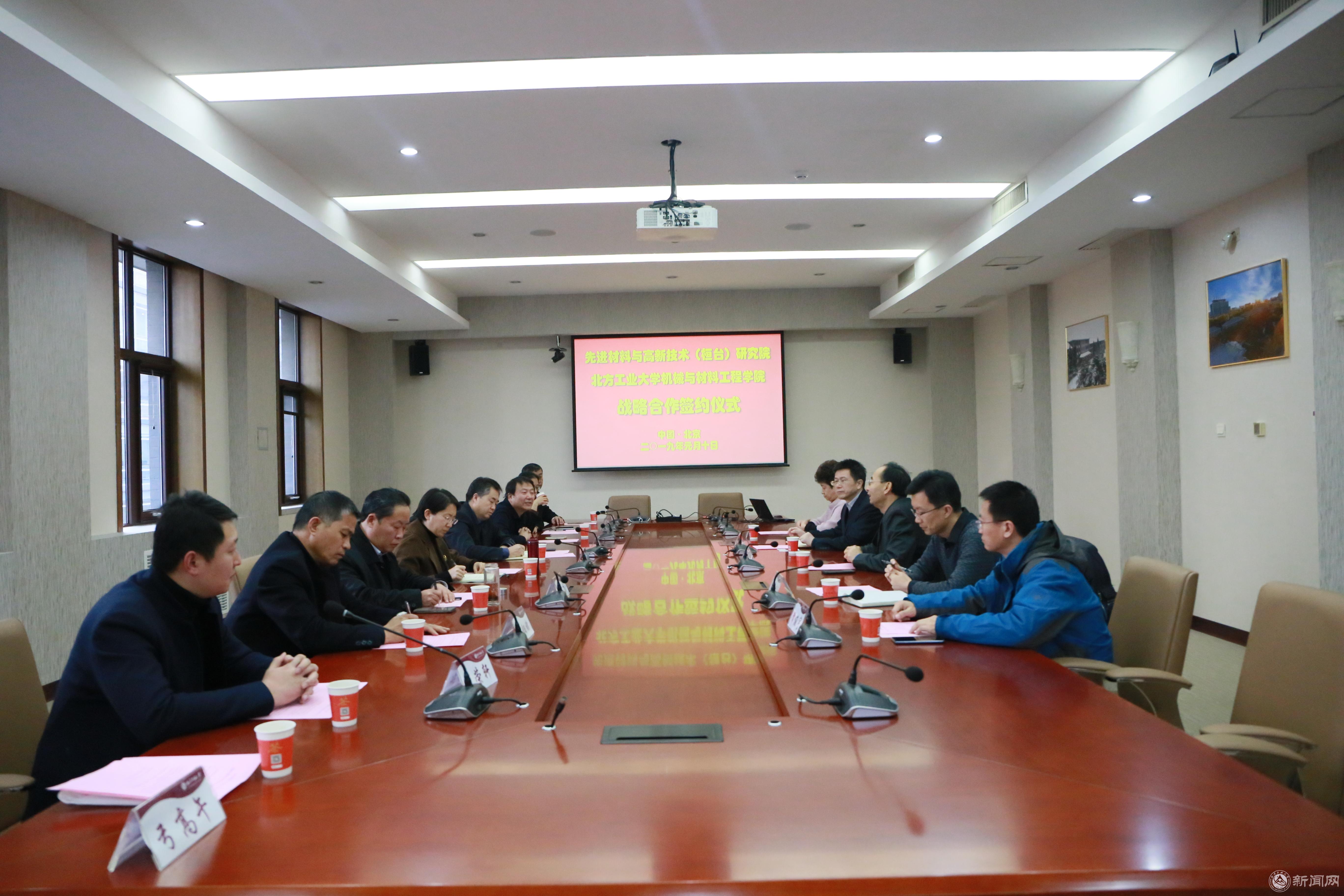 在簽字儀式上,機械與材料工程學院院長李強介紹了學院整體情況,重點介紹了科學研究方向與取得的成果,并對桓臺縣委副書記、縣長邊江風一行表示熱烈歡迎。桓臺縣委副書記、縣長邊江風簡要介紹了桓臺縣近年的發展情況。桓臺縣是我國百強縣,2018年總產值超過2000億,財稅收入超過80億,形成了以冶金、化工、建材、機械制造為主的、實力雄厚的縣域工業。邊江風說,為增加發展新動能,實現現有產業技術升級改造,縣委縣政府成立高新材料與先進技術研究院,聘請中國鋼鐵研究總院新冶高科集團董事長兼總經理張啟富任研究院院長,并積極探索開展與北方工業大學機械與材料工程學院的政產學研戰略合作。