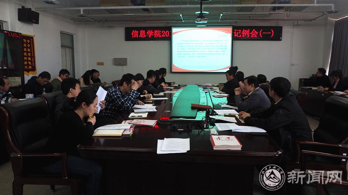 為貫徹落實學校2019年工作部署,明確學院黨委新學期的工作要點,保證基層黨建各項工作有序開展,3月5日,信息學院黨委召開了2019年首次支部書記例會。黨委辦公室成員、各黨支部書記參加,會議由學院黨委書記劉文楷主持。
