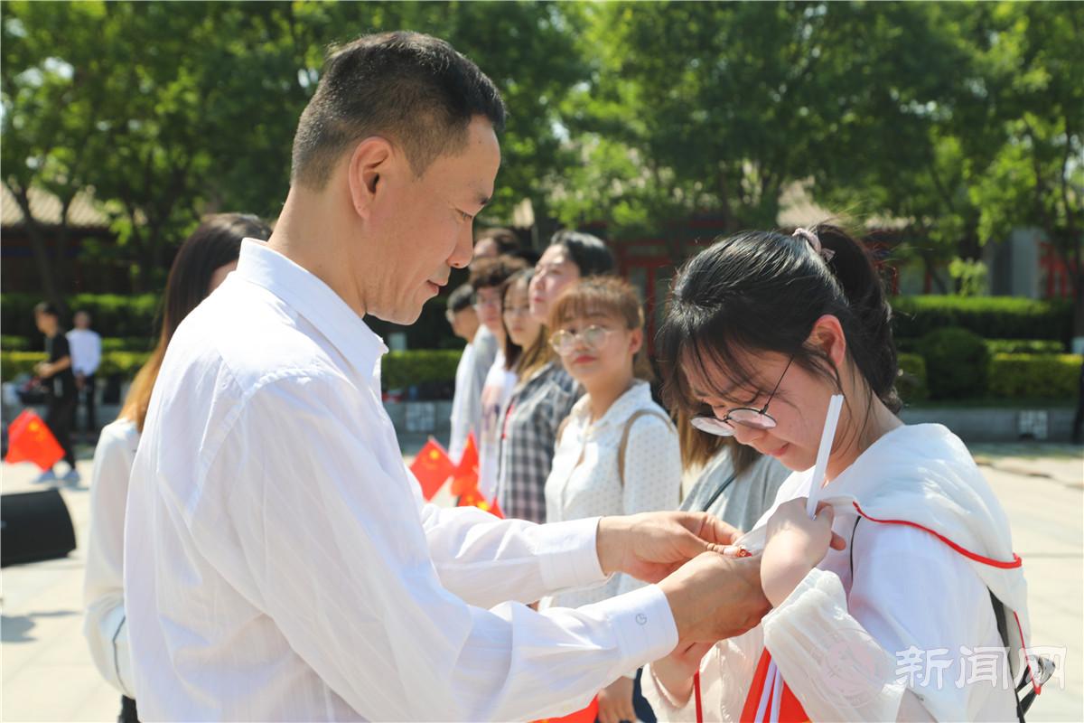 隨后,學院黨委宣傳委員、院長張勃老師為預備黨員佩戴黨員徽章,學院黨委組織委員王湘老師帶領黨員面對黨旗莊嚴宣誓,大家以飽滿的熱情、鏗鏘有力的聲音發出心底的誓言:嚴格堅持黨員標準,保持黨員形象,永葆黨員本色,牢記職責使命,踐行對黨的莊嚴承諾。
