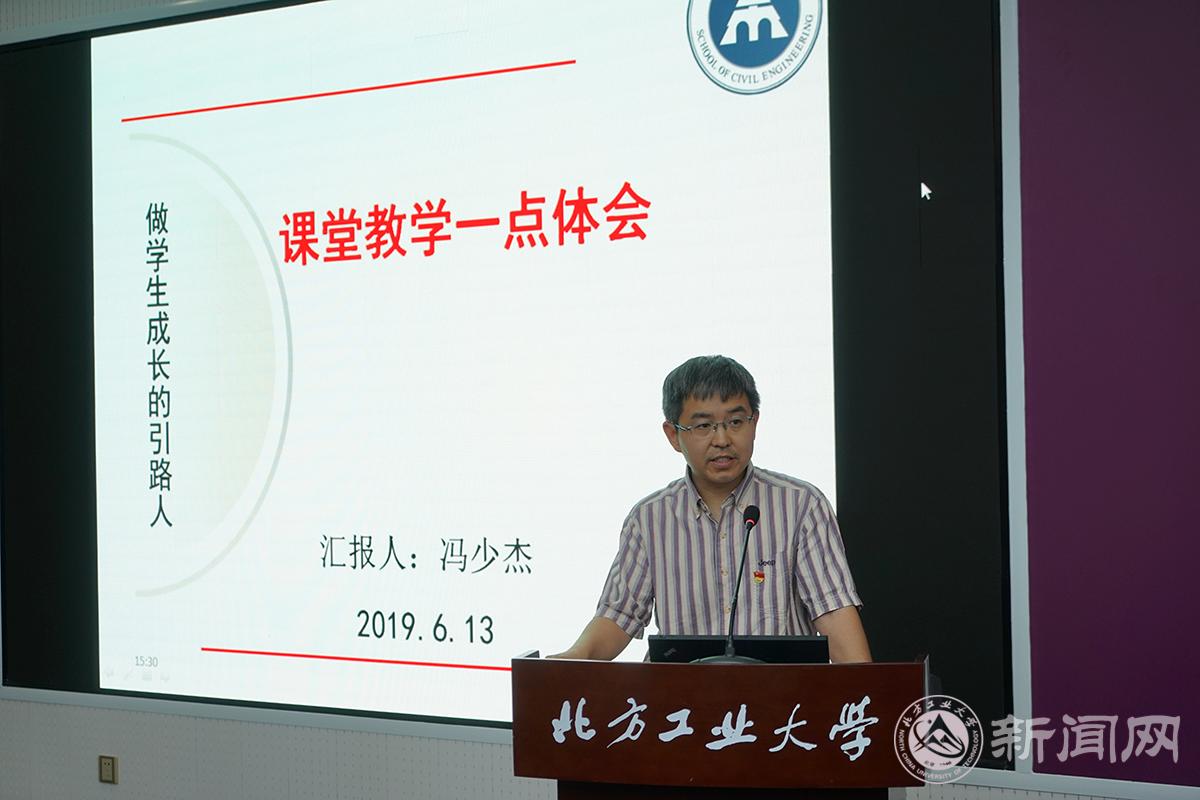 宋志飛副院長向大家展示了課堂教學(xué)管理規(guī)范的教師課程平時(shí)成績評定的評價(jià)方式和過程記錄,希望任課教師能夠從細(xì)節(jié)入手不斷提高課堂教學(xué)質(zhì)量;土木工程系主任宋小軟老師以《當(dāng)前背景下的土木工程專業(yè)建設(shè)現(xiàn)狀》為題,對智能建造新專業(yè)建設(shè)、土木工程專業(yè)認(rèn)證(評估)準(zhǔn)備工作以及虛擬仿真試驗(yàn)平臺建設(shè)等進(jìn)行了匯報(bào);土木系葛燕鋒老師以《土木畢業(yè)設(shè)計(jì)質(zhì)量控制》為題,介紹了土木工程專業(yè)畢業(yè)設(shè)計(jì)從選題、開題,到中期檢查、期末答辯,全過程的質(zhì)量管理與控制方法;張少波老師以《踐行工匠精神,用匠心上好每一堂課》為題,從課前準(zhǔn)備,課上精神面貌、講授技巧以及課堂管理等方面與大家分享了課堂教學(xué)的經(jīng)驗(yàn);李悅老師就如何幫助學(xué)生盡早樹立大學(xué)學(xué)習(xí)目標(biāo)、明確各學(xué)年具體任務(wù),同時(shí),如何做好家校溝通等談了自己班導(dǎo)師工作的體會(huì);陳偉嬌老師以《尊重、關(guān)愛、教導(dǎo)--我的學(xué)生工作》為題分享了自己三屆班導(dǎo)師工作的體會(huì),用心對待每一位學(xué)生,真心幫助他們成長,并展示了所帶班級學(xué)生獲獎(jiǎng)、考研等成績;劉心男老師以《淺談專業(yè)課程思政內(nèi)容的選擇和組織實(shí)施》為題,剖析了專業(yè)課程的思政內(nèi)涵,課程思政的內(nèi)容選擇與組織實(shí)施,并結(jié)合自身在《建設(shè)法規(guī)》課程中的實(shí)踐,分享了課程思政的體會(huì);馮少杰與大家分享了自己的教學(xué)經(jīng)驗(yàn),包括課前精心設(shè)計(jì)、課上嚴(yán)格管理、課后持續(xù)關(guān)注,充分體現(xiàn)出作為教師教書育人和對待學(xué)生的嚴(yán)管厚愛;學(xué)院團(tuán)委書記金磊以《年華共進(jìn),并肩前行》為題,回顧了學(xué)院學(xué)風(fēng)建設(shè)、團(tuán)學(xué)活動(dòng)、關(guān)愛學(xué)生以及危機(jī)處理等方面的工作和收獲。