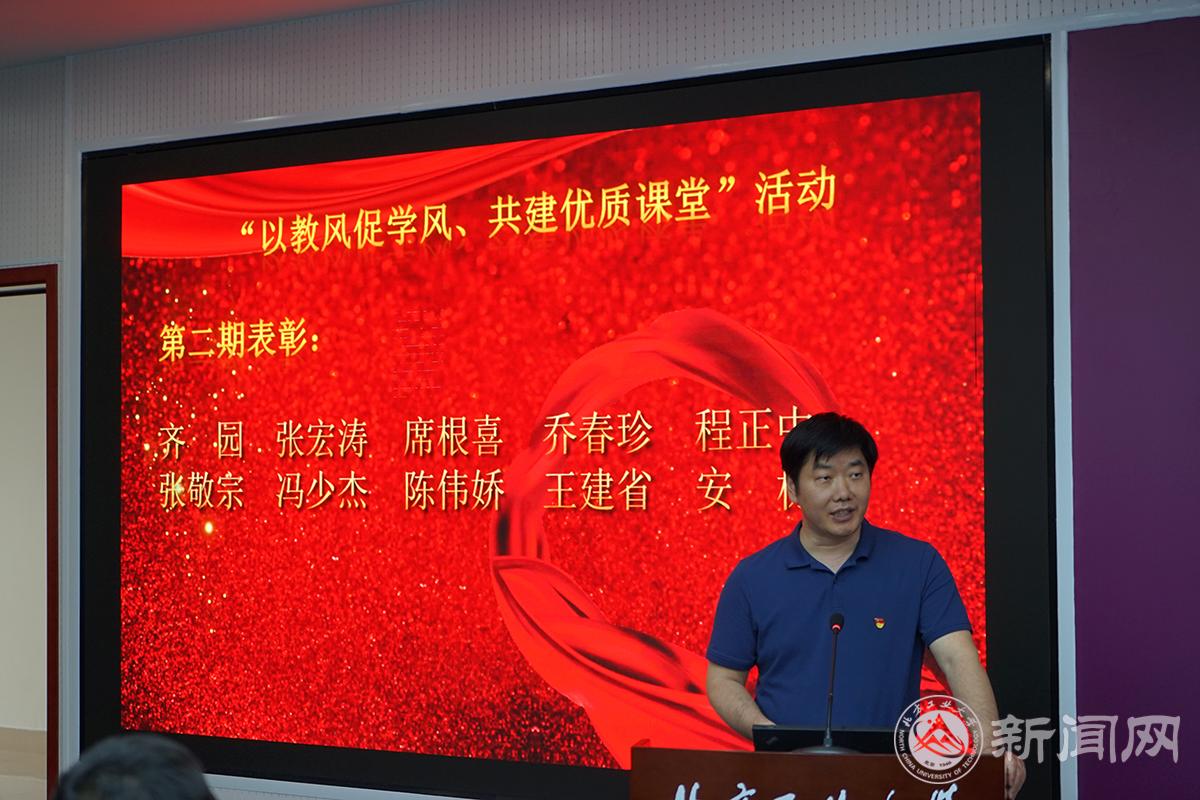 大會(huì)對學(xué)院2018-2019學(xué)年先進(jìn)黨支部、優(yōu)秀黨務(wù)工作者和優(yōu)秀共產(chǎn)黨員 表彰;對在學(xué)院開展的“以教風(fēng)促學(xué)風(fēng),共建優(yōu)質(zhì)課堂”活動(dòng)中表現(xiàn)突出的教師進(jìn)行了表彰,劉婉立書記和紀(jì)穎波院長分別為獲獎(jiǎng)?wù)哳C發(fā)證書。
