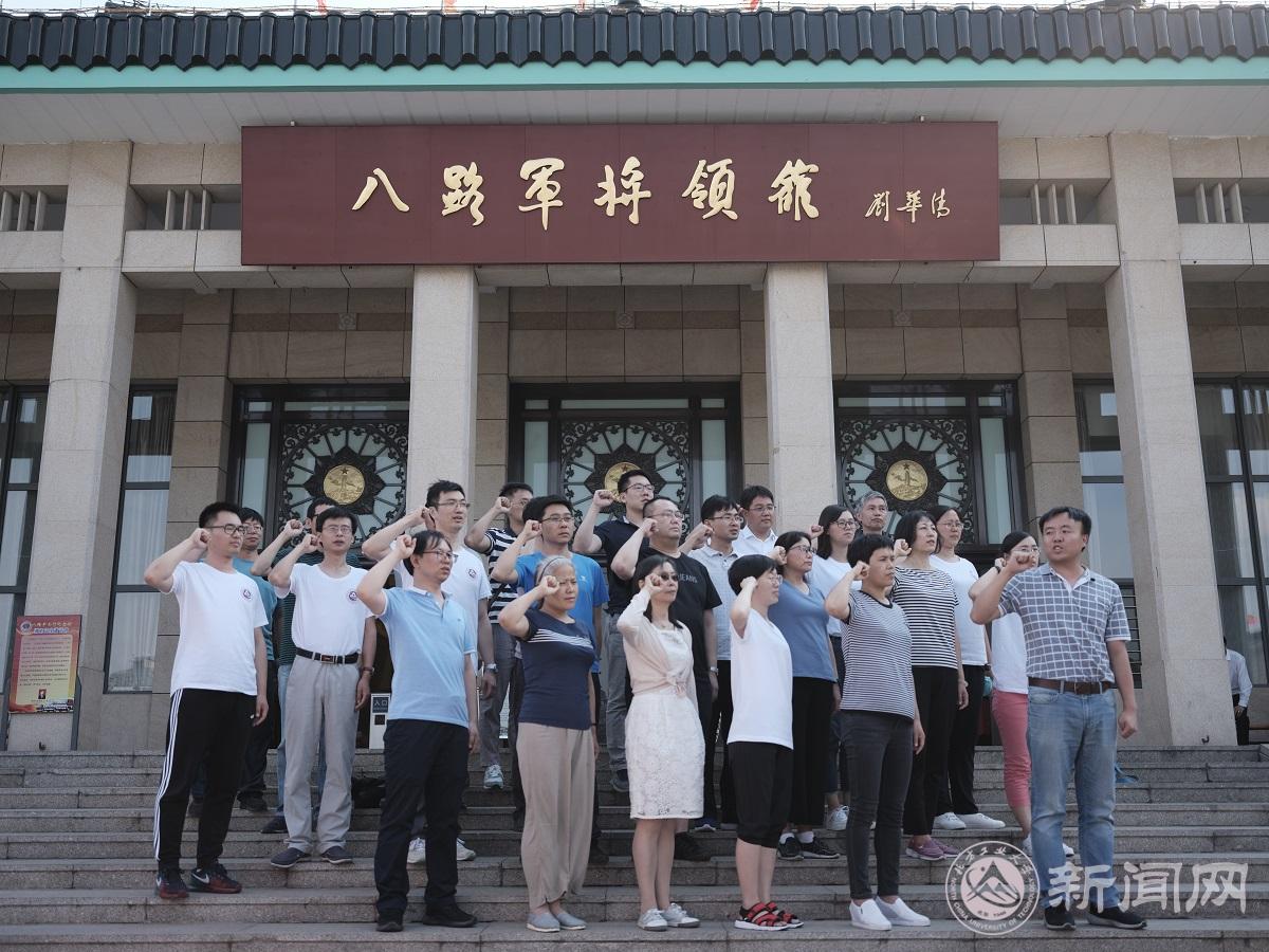 首先來到位于鳳凰山下的八路軍太行紀念館,這里記載著我們黨領導八路軍艱苦卓絕的抗戰史,全體同志迎著驕陽步行至紀念館大廳,在革命先輩雕塑前方肅立,舉行敬獻花籃儀式,并用深深的三鞠躬表達了對革命先烈的深切緬懷和無限崇敬。跟著講解員的講解,同志們認真感受著革命先輩的英勇事跡,進一步堅定“不忘初心,牢記使命”的信念和決心,紀念館內一個個真實往事,一件件歷史實物,重現了太行老區八路軍和人民投身抗戰的光輝歷史,承載著無數共產黨人的不忘初心、使命精神。隨后在紀念館前,全體黨員面對鮮紅的中國共產黨黨旗,再次進行入黨宣誓。