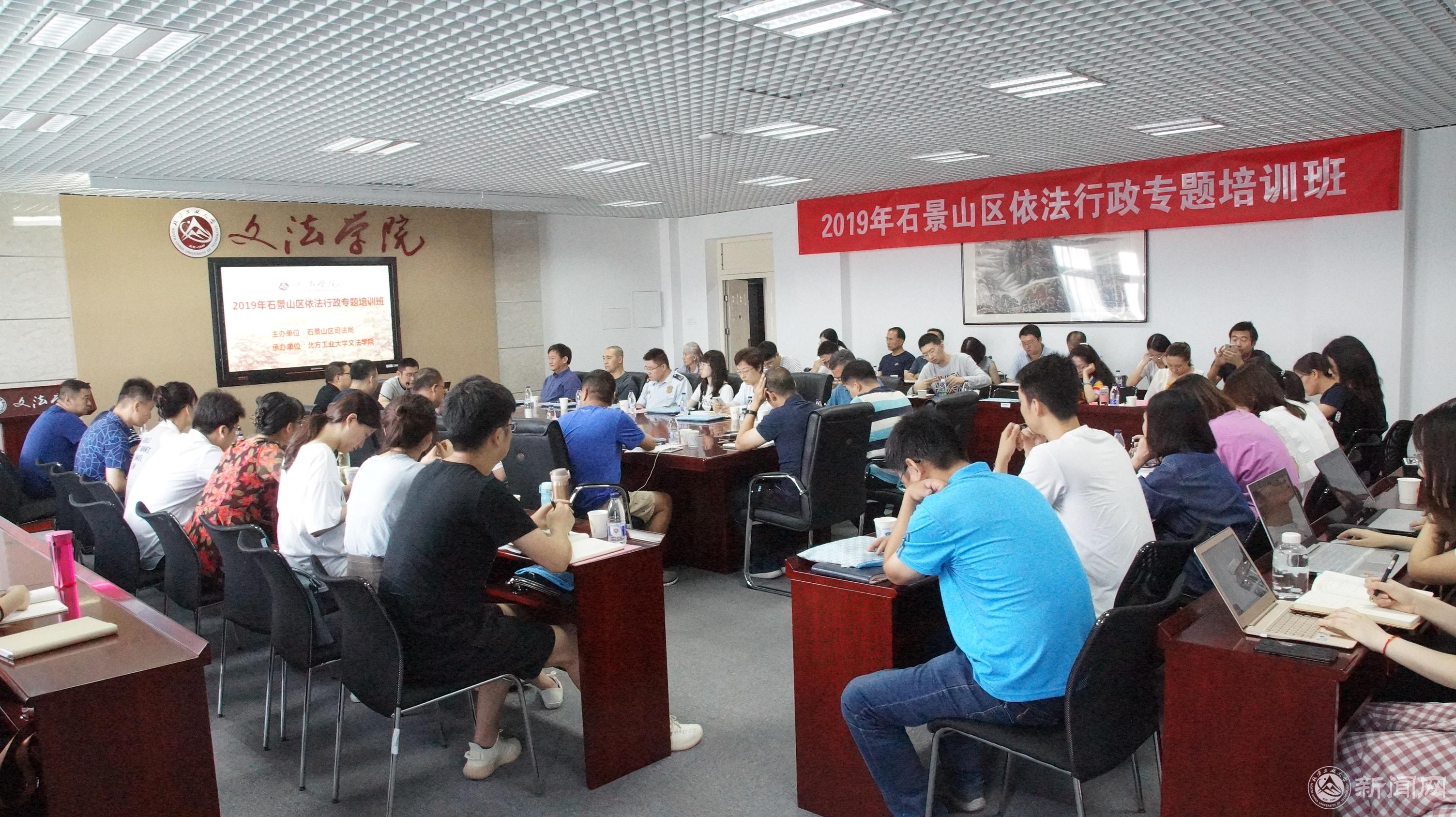 為切實(shí)增強(qiáng)石景山區(qū)領(lǐng)導(dǎo)干部及一線行政執(zhí)法人員法律素質(zhì),不斷提高運(yùn)用法治思維和法律方式深化改革、推動(dòng)發(fā)展、化解矛盾、維護(hù)穩(wěn)定能力,提高政府法制工作人員依法行政能力和行政執(zhí)法人員執(zhí)法水平,2019年7月8-11日,由北京市石景山區(qū)司法局主辦、我校文法學(xué)院承辦的“2019年石景山區(qū)依法行政專題培訓(xùn)班”在瀚學(xué)樓710北京城市治理研究基地學(xué)術(shù)報(bào)告廳舉行。石景山區(qū)司法局倪斐遠(yuǎn)局長(zhǎng)、北方工業(yè)大學(xué)文法學(xué)院院長(zhǎng)劉澤軍教授出席開(kāi)班儀式,來(lái)自石景山區(qū)各行政部門的行政執(zhí)法人員共100余人分兩批參加了專題培訓(xùn),培訓(xùn)由法律系主任王海橋主持。